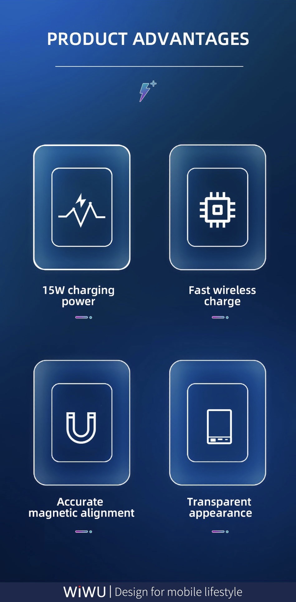 Dock sạc không dây Wi wu Q12 Wi-W029 1. Nhanh hơn gấp 2 lần! Sạc flash tốc độ tối đa 15W thực sự, Qi2 mạnh hơn, chỉ cần chạm và di chuyển 2. Thiết kế