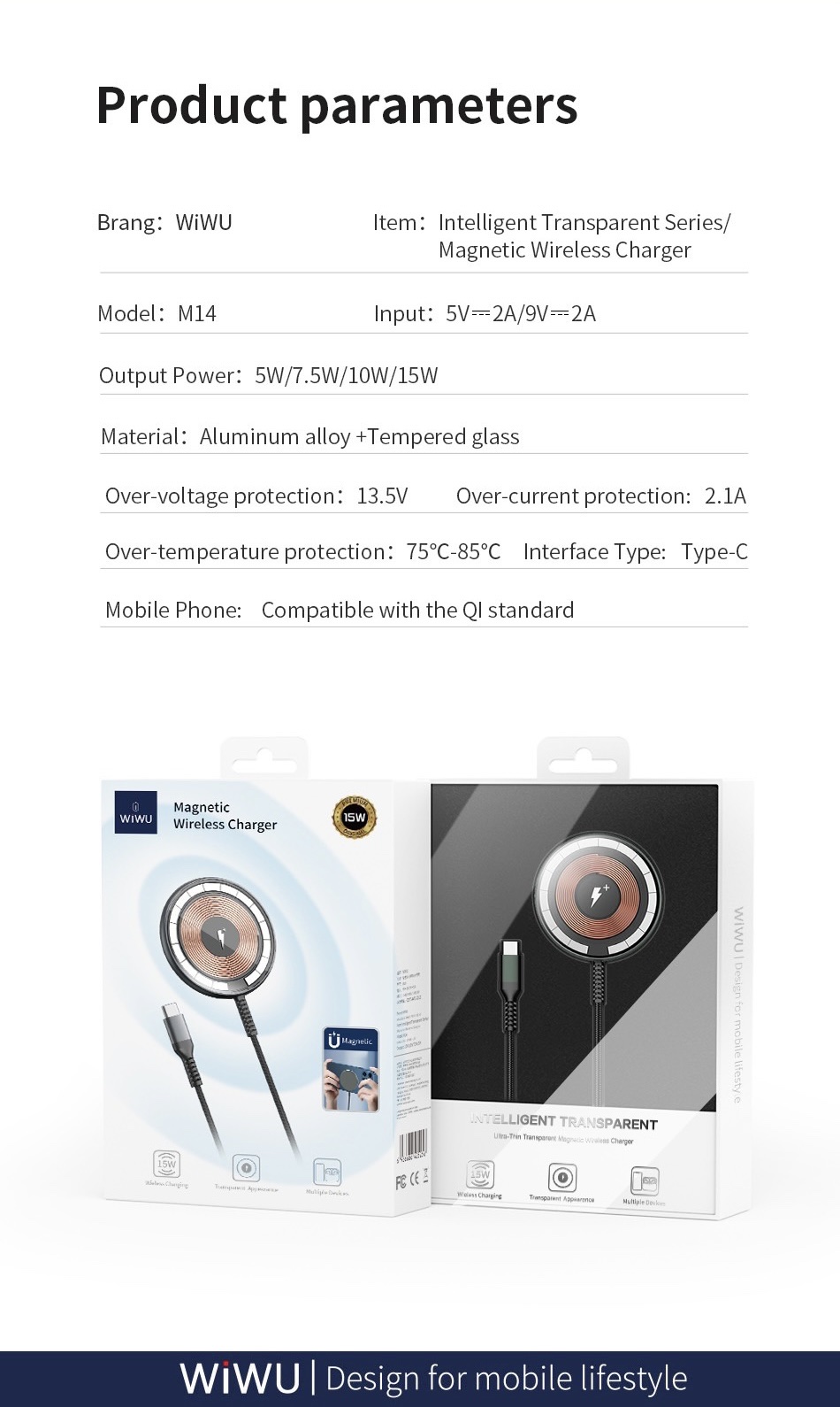 Mua tại TiktokSạc Wiwu M14 Magnetic Wireless 15W dành cho Smart Phone