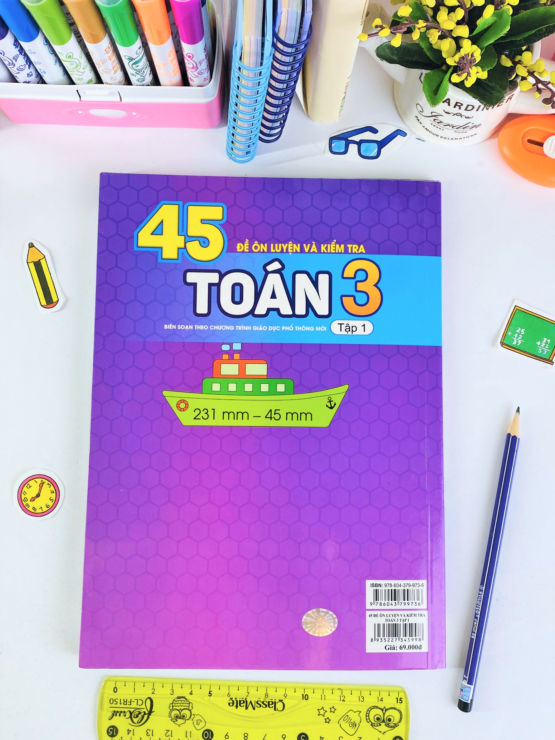 Nhằm giúp các thầy cô giáo và các em học sinh tiểu học có thêm tài liệu kiến thức trong tuần, giữa kì và cuối kì theo chương trình mới, chúng tôi biên soạn bộ sách ' 45 ĐỀ ÔN LUYỆN VÀ KIỂM TRA TOÁN '. Bộ sách gồm 10 quyển, mỗi lớp 2 quyển : Tập 1 và tập 2. Mỗi tuần có 2 đề ôn luyện, còn lại là một số để tự luyện, tự kiểm tra giữa kì và cuối kì. Mỗi đề gồm các bài tập chọn lọc, tiêu biểu với đầy đủ các dạng bài tập trắc nghiệm ( điền khuyết, đúng - sai, chọn đáp án đú) và bài tập tự luận.