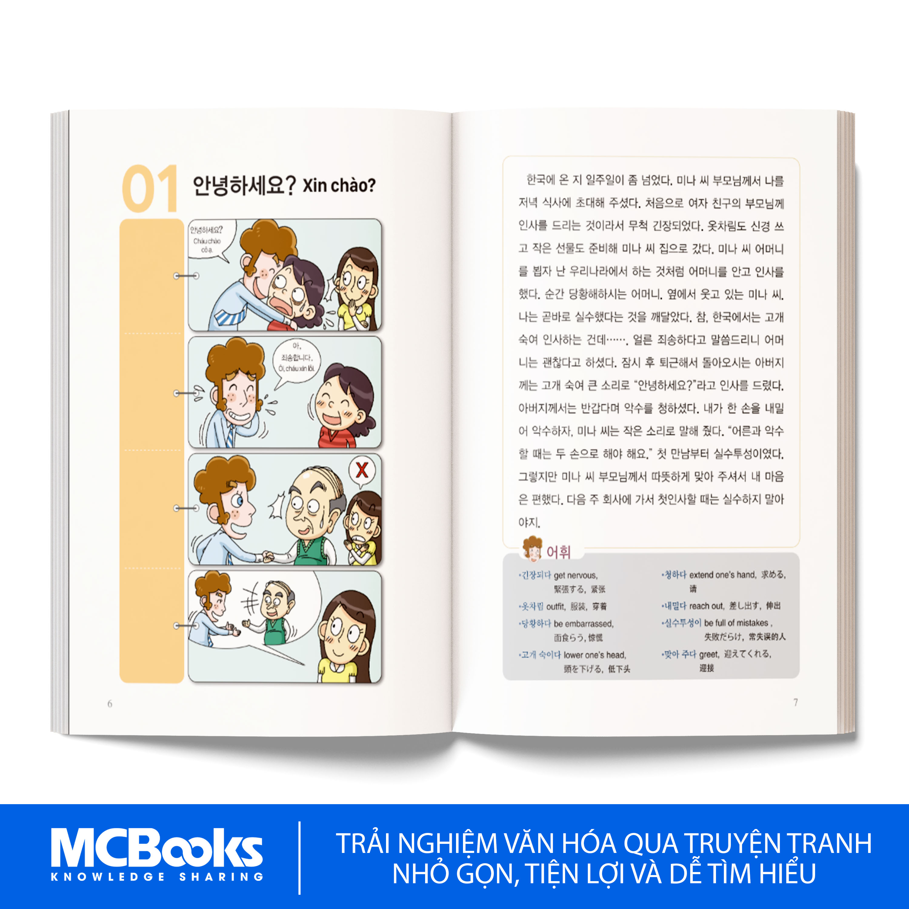 Nội dung cuốn sách: Là hành trình trải nghiệm của hai nhân vật người nước ngoài khi sống tại Hàn bằng những mẩu truyện tranh sinh động. Cuối mỗi bài đều có phần điểm lại những từ vựng quan trọng kèm dịch nghĩa, giúp người đọc có thể dễ dàng học luôn từ mới, đồng thời hiểu và ứng dụng ngay vào thực tế.