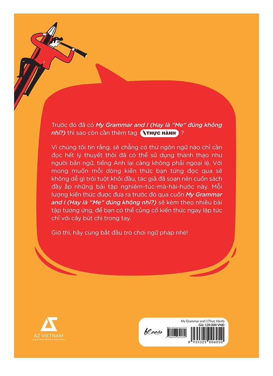 Vì chúng tôi tin rằng, sẽ chẳng có thứ ngôn ngữ nào chỉ cần học hết lý thuyết thôi đã có thể sử dụng thành thạo như người bản ngữ, tiếng Anh lại càng không phải là ngoại lệ. Với mong muốn mỗi dòng kiến thức bạn từng đọc qua sẽ không dễ dàng trôi tuột khỏi đầu, tác giả đã soạn nên cuốn sách đấy ắp những bài tập nghiêm-túc-mà-hài-hước này. Mỗi lượng kiến thức được đưa ra trong My Grammar And I (Hay là “Me” đúng không nhỉ?) sẽ kèm theo nhiều bài tập tương ứng, để bạn có thể củng cố kiến thức ngay lập tức chỉ với cây bút chì trong tay.
