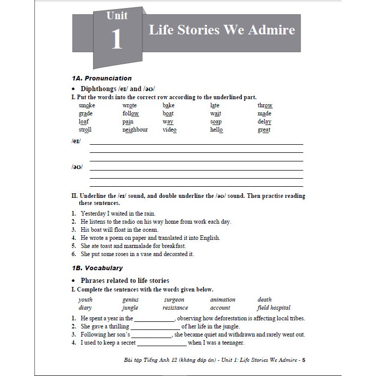 TIẾNG ANH 12 - UNIT 1 - LIFE STORIES WE ADMIRE ADMIRE- GLOBAL SUCCESS - GIẢI SÁCH BÀI TẬP - ĐÁP ÁN