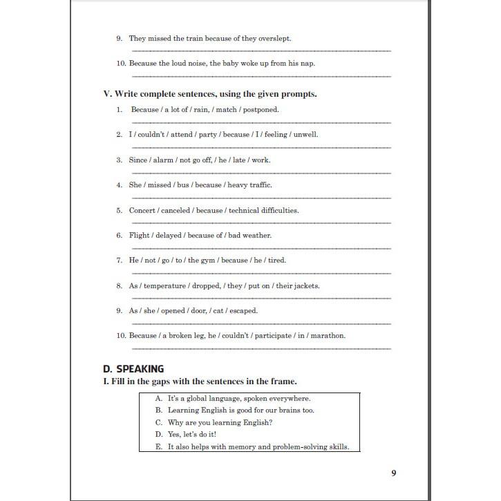 D. Speaking: Bao gồm các bài tập về kĩ năng nói