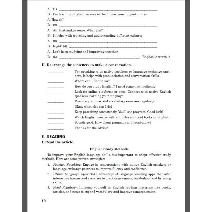 E. Reading: Bao gồm các bài tập về kĩ năng đọc hiểu