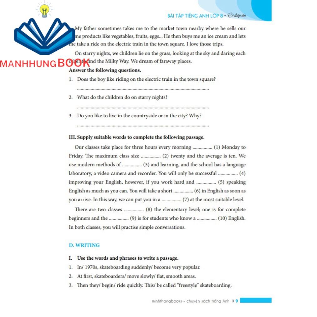 ============giới thiệu sách ============ Cuốn sách biên soạn dựa trên sách giáo khoa thí điểm của Bộ Giáo Dục và Đào Tạo. Sách tập trung vào việc rèn luyện các kỹ năng cơ bản như