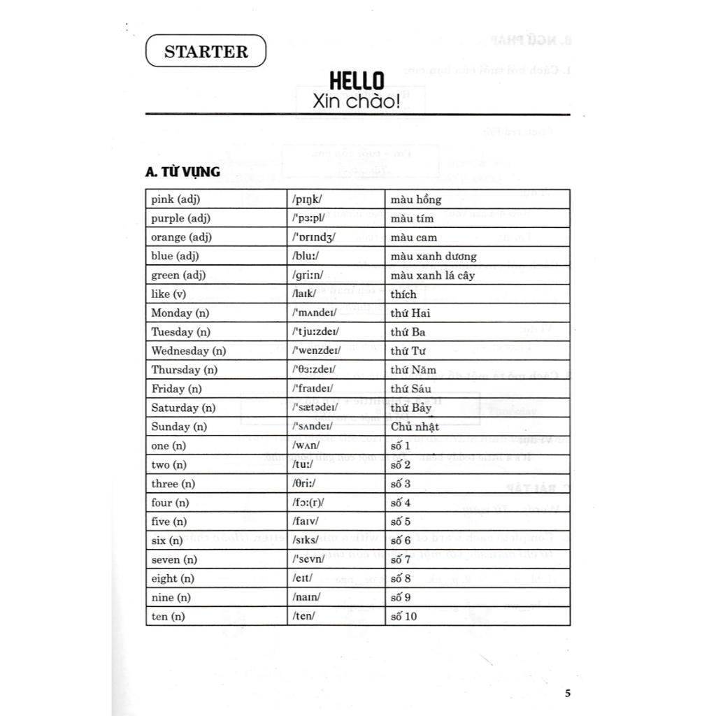 Các em sẽ luyện viết và học từ tiếng anh bằng các hình ảnh minh họa sinh động. Sau phần luyện viết từ vựng là các hoạt động chọn từ đúng, điền từ, ghép từ với hình thích hợp, sắp xếp từ. Nhằm giúp các em ôn luyện từ vựng đã học. Sau mỗi 3 đơn vị bài học có phần ôn tập (Review) với các hoạt động lý thú giúp các em củng cố kiến thức.