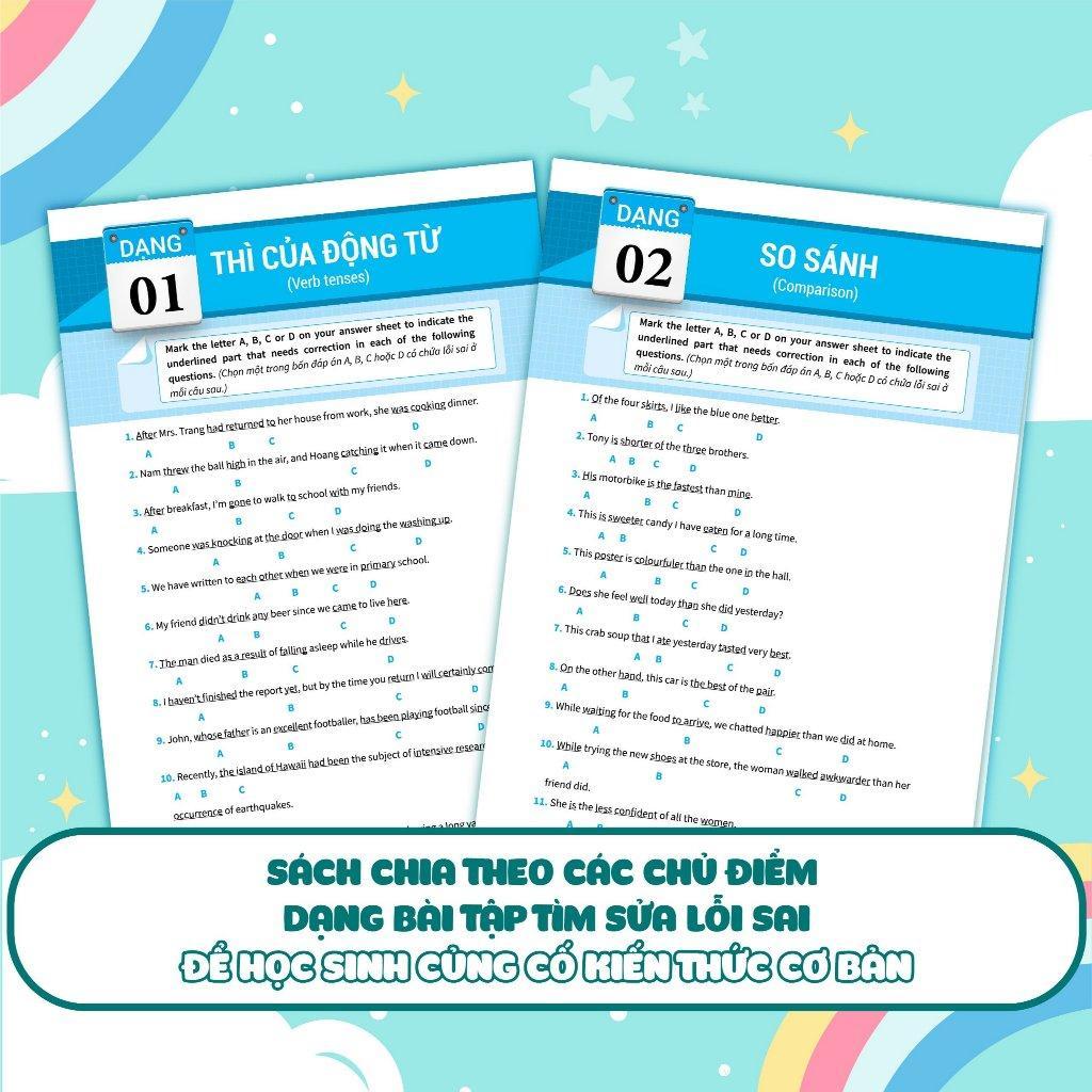 Cuốn sách bao gồm 13 dạng bài tập tìm sửa lỗi sai trong kì thi vào 10 và 10 Chuyên môn Tiếng Anh