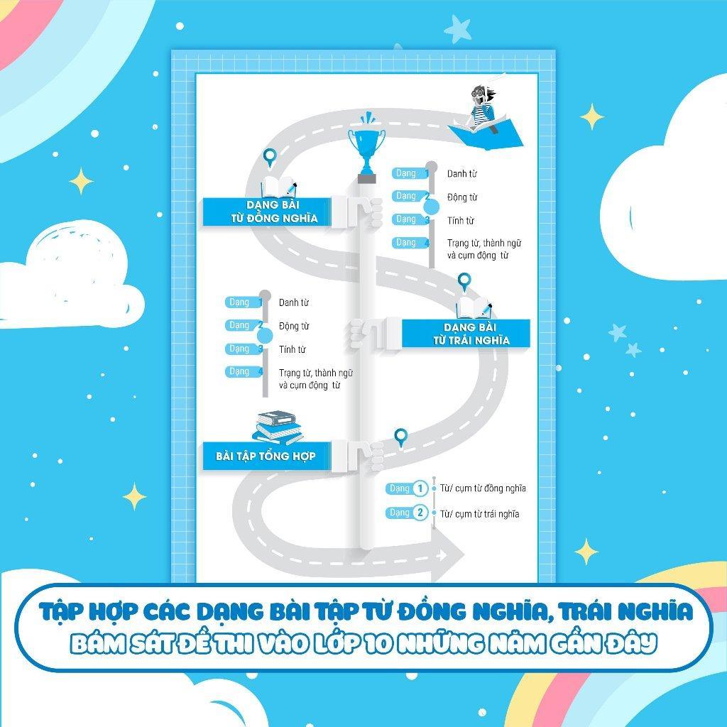 Sách còn bổ sung các dạng bài tập tổng hợp về cụm từ đồng nghĩa và cụm từ trái nghĩa thường gặp nhất, 100% xuất hiện trong đề thi