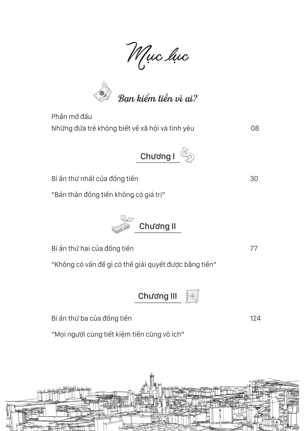 - Chương 2: Bí ẩn thứ hai của đồng tiền “Không có vấn đề gì có thể giải quyết được bằng tiền".