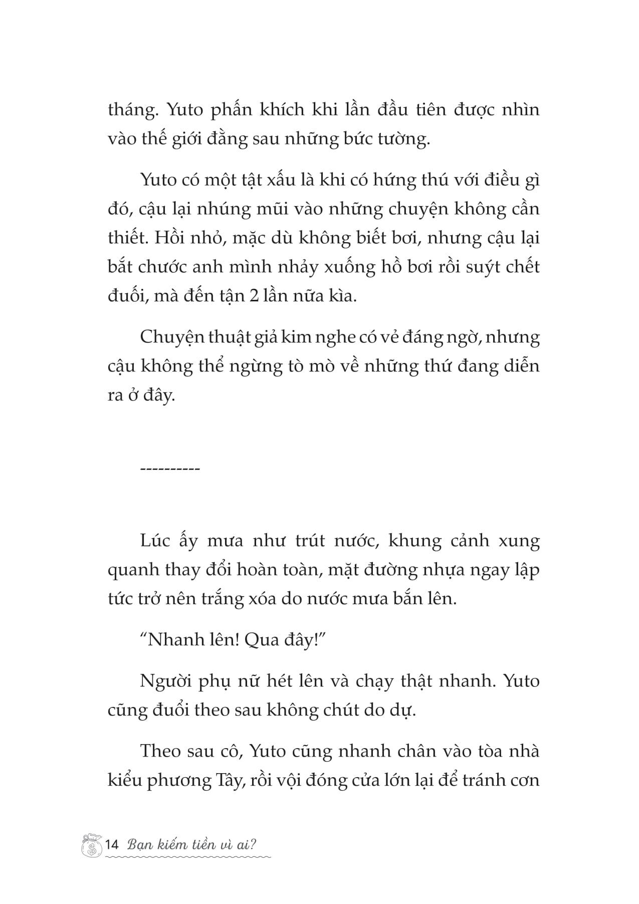 - Hướng đến tự do tài chính và chủ động cuộc sống. Nội dung của “Bạn Kiếm Tiền Vì Ai” được xây dựng thành 6 chương cụ thể