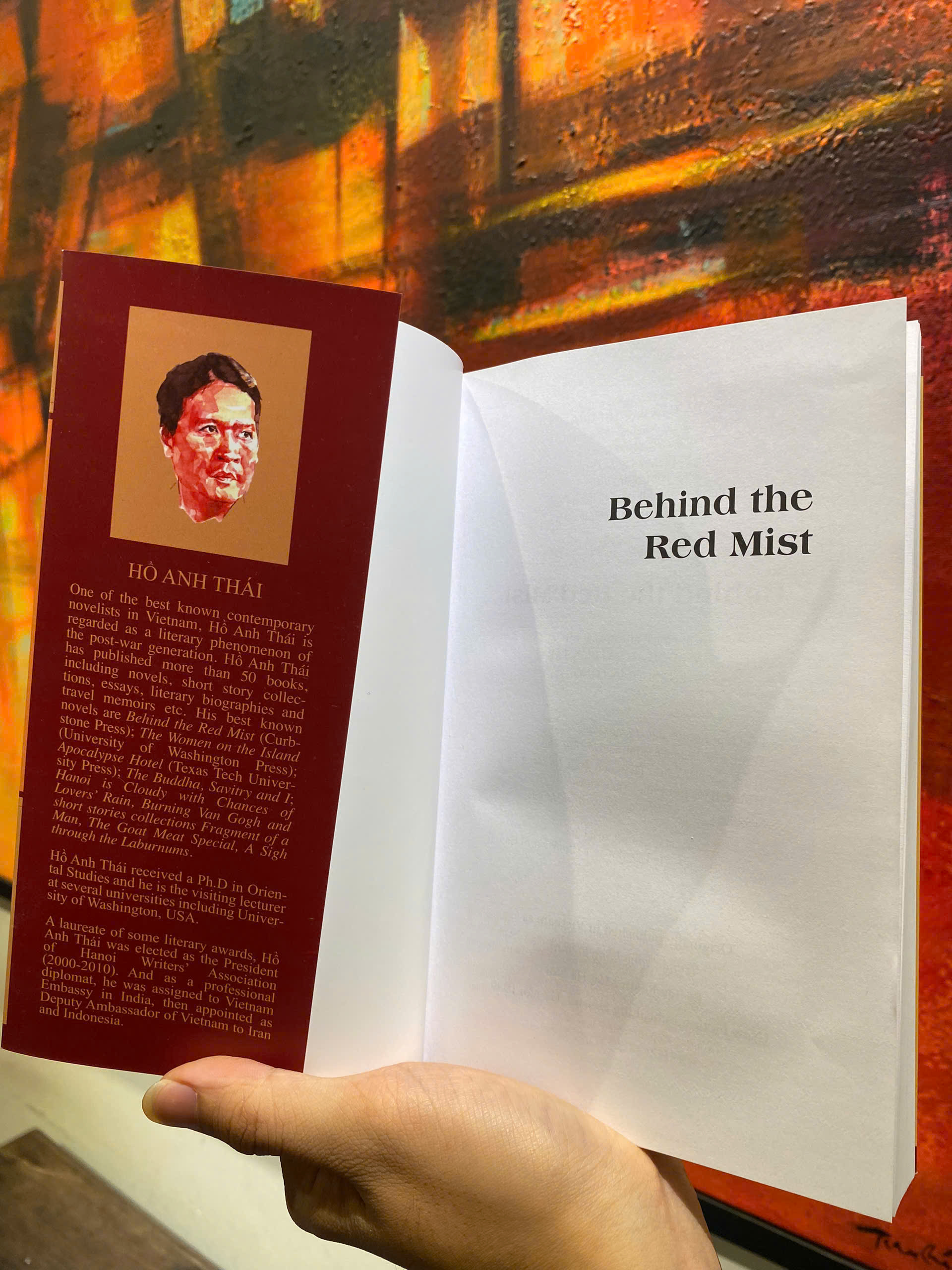 Behind the Red Mist lần đầu tiên bằng tiếng Anh cung cấp cho chúng ta một loạt truyện dài từ nhà văn quan trọng nhất của thế hệ hậu chiến ở Việt Nam. Các nhân vật trải dài từ một người Ấn Độ mang xương mẹ trong ba lô, đến một góa phụ chiến tranh cố gắng ghép lại cuộc sống của mình một cách tuyệt vọng qua những mảnh vỡ mà bà thu thập được từ sân sau nhà. Truyện ngắn có tựa đề "Behind the Red Mist" là một hành trình quay lại quá khứ của Việt Nam, một tác phẩm châm biếm xã hội trong đó một chàng trai trẻ ở Hà Nội của những năm tám mươi bị điện giật và được đưa trở lại cùng một khu chung cư của mình vào năm 1967 trong thời chiến Việt Nam trong cuộc ném bom của Mỹ. Anh ta không chỉ chứng kiến chiến tranh bằng con mắt của một người biết trước kết cục của nó, mà còn tham gia vào cuộc tán tỉnh của cha mẹ mình và khám phá ra một số sự thật về thế hệ được coi là hình mẫu của chính anh ta.