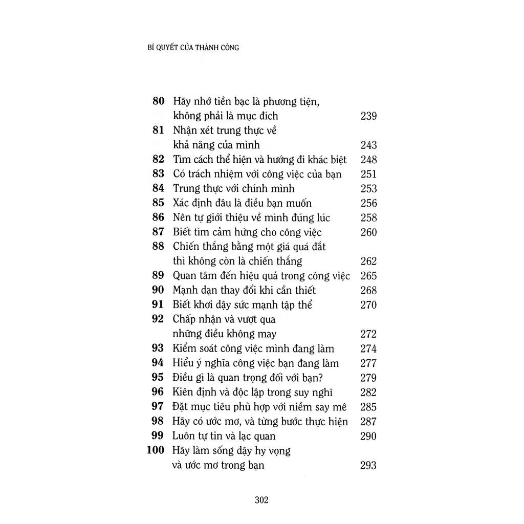 Bí quyết của thành công không phải là những gì xa lạ và khó thực hiện, đòi hỏi phải rèn luyện công phu trong nhiều năm trời mới có được. Cuốn sách không đưa ra những điều cao siêu hay đặt ra những mục tiêu lớn lao vượt khỏi khả năng của mỗi người. Mà chỉ đơn giản là những thái độ sống, những suy nghĩ tích cực, những điều khuyên thực tế mà bạn có thể áp dụng ngay vào lúc này – bất kể hoàn cảnh và tình trạng hiện có của bạn.