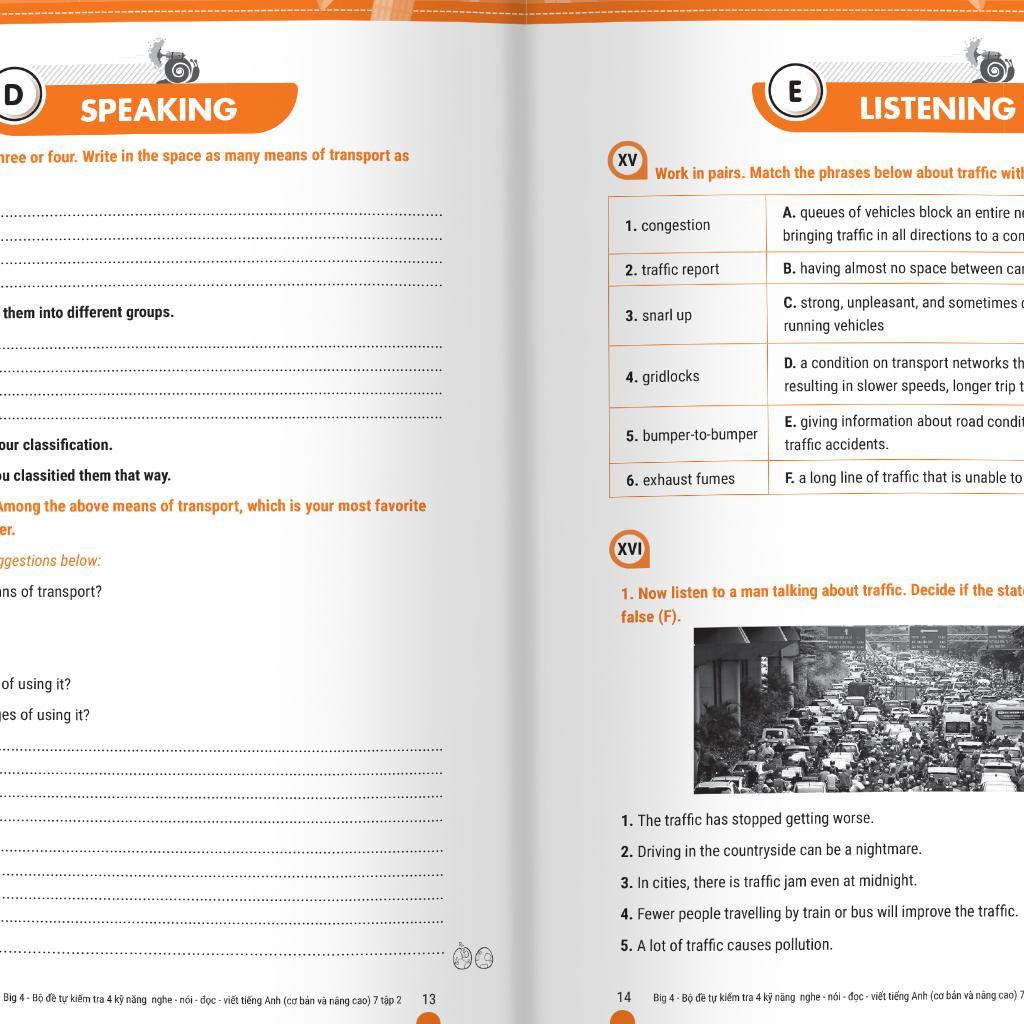 Big 4 bộ đề tự kiểm tra 4 kỹ năng Nghe - Nói - Đọc - Viết TA (cơ bản và nâng cao) lớp 7 tập 1