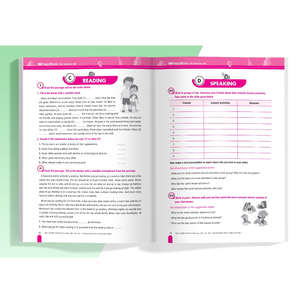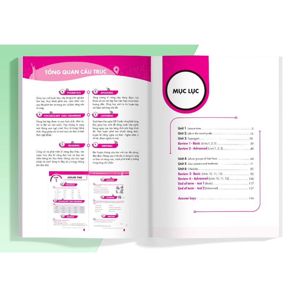 Các bài tập về 4 kỹ năng được liên kết với nhau theo logic bài học giúp cảm em cảm thấy tự tin và phát triển toàn diện kỹ năng nghe, nói, đọc, viết tiếng Anh