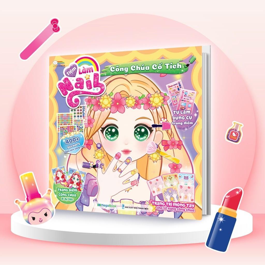 ✨Sách bo 4 cuốn Tiệm Làm Nail Công chúa (1200+ stickers dễ thương) - Sách bóc dán sticker cho bé gái