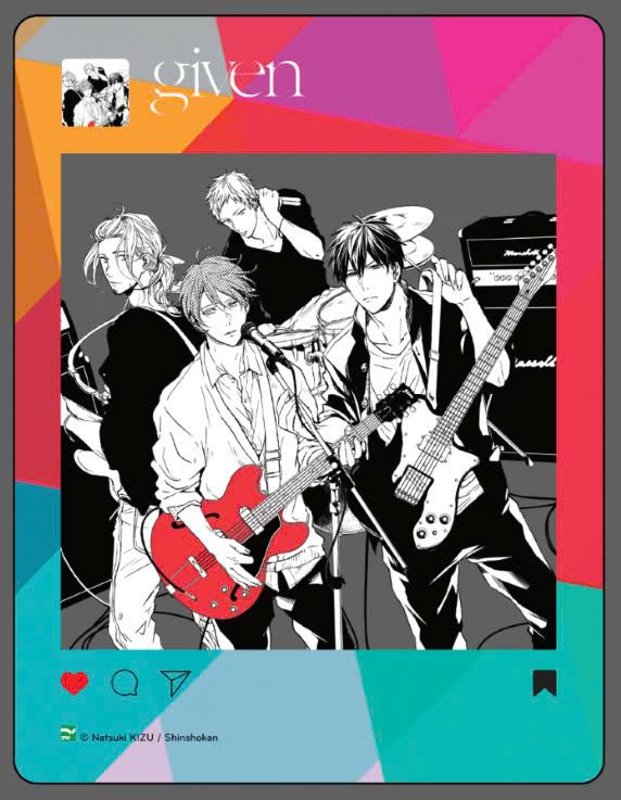 - Given - Tập 3 Nhận ra tình cảm của m.ình, Uenoyama đã hôn Mafuyu phía sau cánh gà sân khấu ở buổi biểu diễn đầu tiên, để rồi sau đó hoang mang, vẫy vùng trong muộn màng. Cậu chưa tỏ tình với Mafuyu, cũng chẳng hay Mafuyu nghĩ gì về m.ình. Trong khi Uenoyama và Mafuyu bắt đầu vun đắp một tình yêu vụng về, Haruki lại ôm trong lòng tâm tư thầm kín với thành viên cùng ban nhạc là Akihiko… Tập 3 của given mở ra chương mới cho cả ban nhạc và tình yêu!