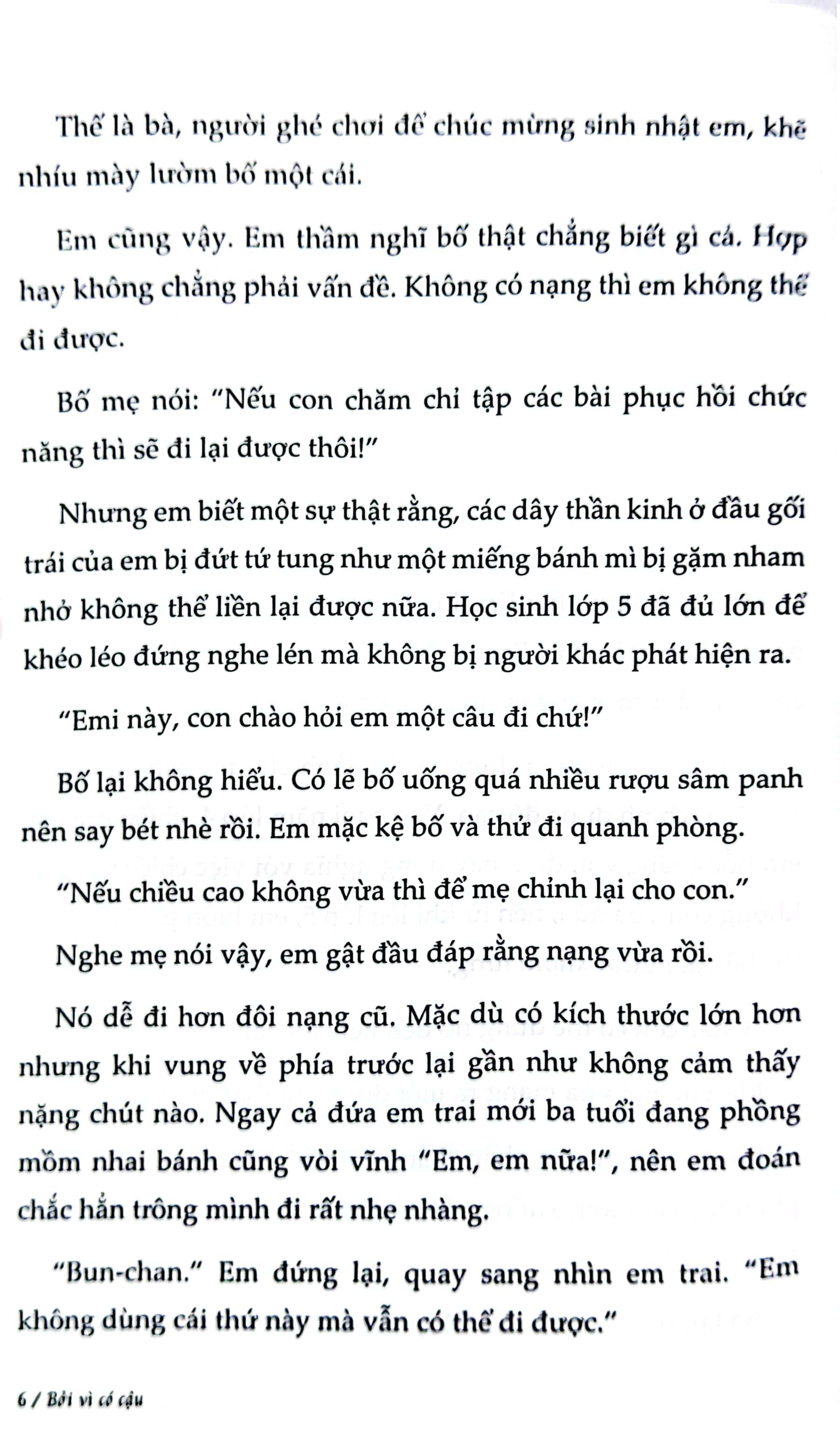 “Bởi vì có cậu” bắt đầu với một cô bé tên Emi-chan gặp tai nạn ô tô và chân không thể di chuyển bình thường được nữa. Khiếm khuyết trên cơ thể khiến Emi thay đổi tính nết trở nên cục cằn, khó tính và luôn muốn làm tổn thương những người xung quang m.ình.