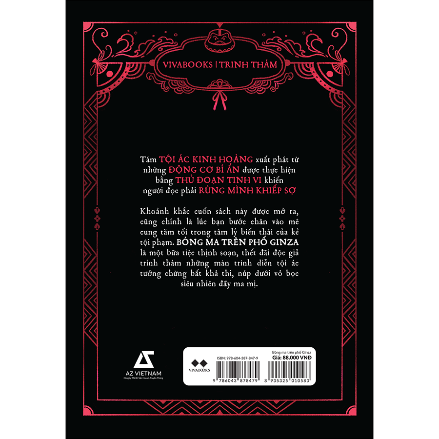 Tám câu chuyện là tám tội ác tưởng chừng bất khả thi, nhưng tất cả đều là những mánh khóe và thủ đoạn của con người, núp bóng ma quỷ để che giấu hành vi phạm tội. Ngòi bút tài hoa của nhà văn trinh thám Osaka Keikichi đã vạch trần những góc tối trong tâm lý con người, đưa người đọc đi tới mọi ngóc ngách để chứng kiến hành trình tội ác đầy bí ẩn. Là một tác phẩm trinh thám cổ điển, BÓNG MA TRÊN PHỐ GINZA hoàn toàn làm thỏa mãn người đọc với những suy luận logic và tài tình trong mỗi câu chuyện.