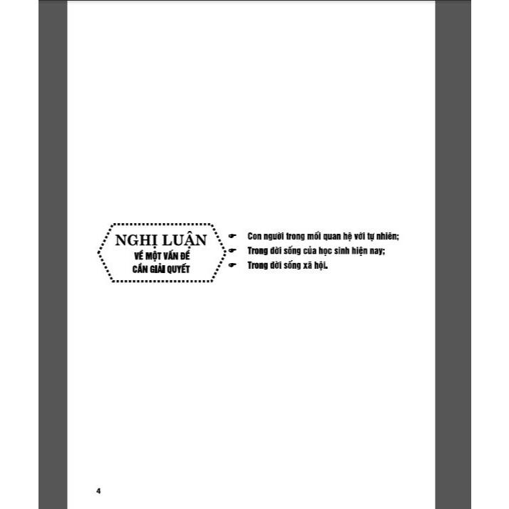 Đây là cuốn sách được biên soạn theo tinh thần thi mới của Bộ Giáo dục và Đào tạo, theo cấu trúc đề thi 3 phần: Kiểm tra kiến thức (câu 1); Nghị luận xã