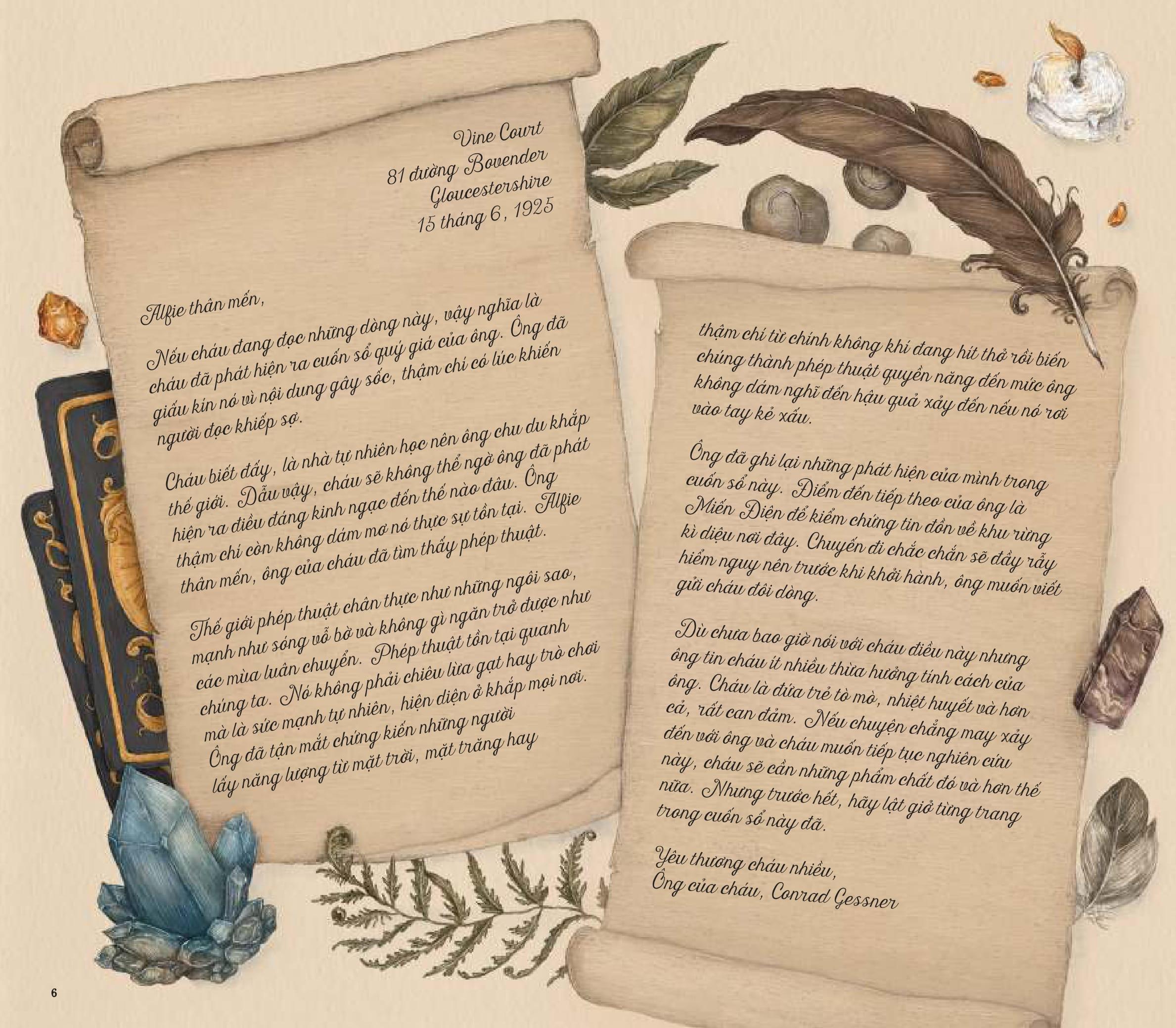 Cẩm Nang Về Phép Thuật Bạn đọc thân mến, Bạn đã sẵn sàng cho chuyến hành trình có một không hai chưa? Vậy hãy lật giở cuốn sách này ngay thôi nào! Phép thuật không chỉ gồm niệm chú và vung đũa làm phép. Nếu tinh ý quan sát, bạn sẽ thấy phép thuật hiển hiện ngay quanh chúng ta. Được biên soạn bởi nhà thực vật học – Giáo sư Conrad Gessner, cuốn sách tuyệt đẹp này là cẩm nang hướng dẫn bạn tìm hiểu khái quát về mọi phép thuật trên thế giới. Cùng tìm hiểu cách người cổ xưa nhận tín hiệu và lời hồi đáp từ mặt trời, mặt trăng, bài tarot hay lựa chọn gỗ cây thiêng phù hợp để làm đũa phép ứng nhất với cá tính của bạn. Dù bạn là phù thủy, pháp sư đầy quyền năng hay mới chỉ chập chững trên hành trình khám phá phép thuật, hãy cứ để nó tự nhiên dẫn lối bạn, bắt đầu từ bao kiến thức diệu kì trong cuốn sách này.