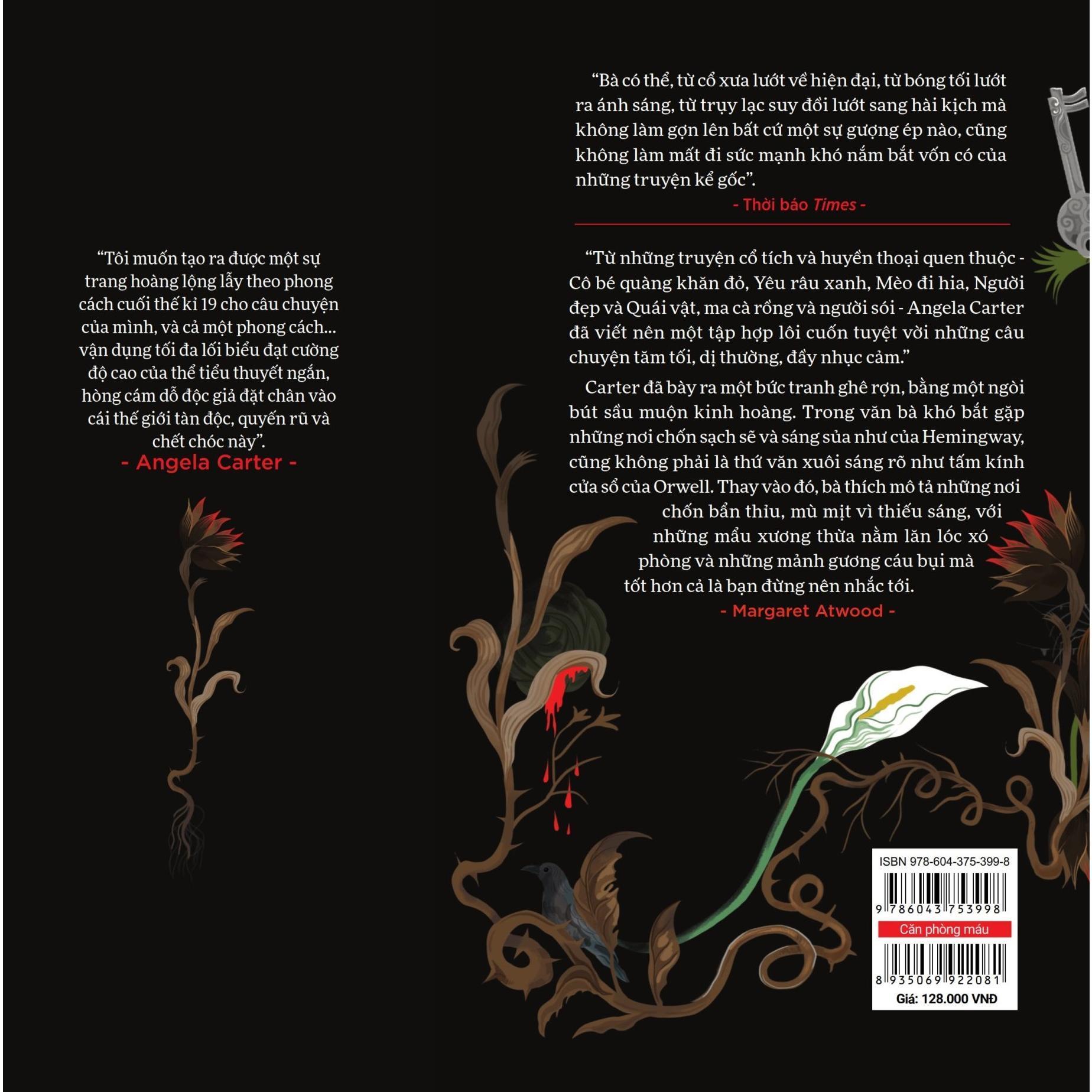 Căn phòng máu của Angela Carter là một tập truyện lấy cảm hứng từ những câu chuyện cổ tích và kinh điển phương Tây, gồm 10 truyện hết sức đa dạng từ 10 góc nhìn khác biệt đầy ấn tượng. Mặc dù mỗi câu chuyện đề cập đến một nhóm nhân vật khác nhau nhưng “phụ nữ bị áp bức tìm kiếm sự giải thoát” là chủ điểm chung được khám phá xuyên suốt tác phẩm, trở thành câu chuyện lớn đề cập đến nữ quyền và khả năng biến đổi.
