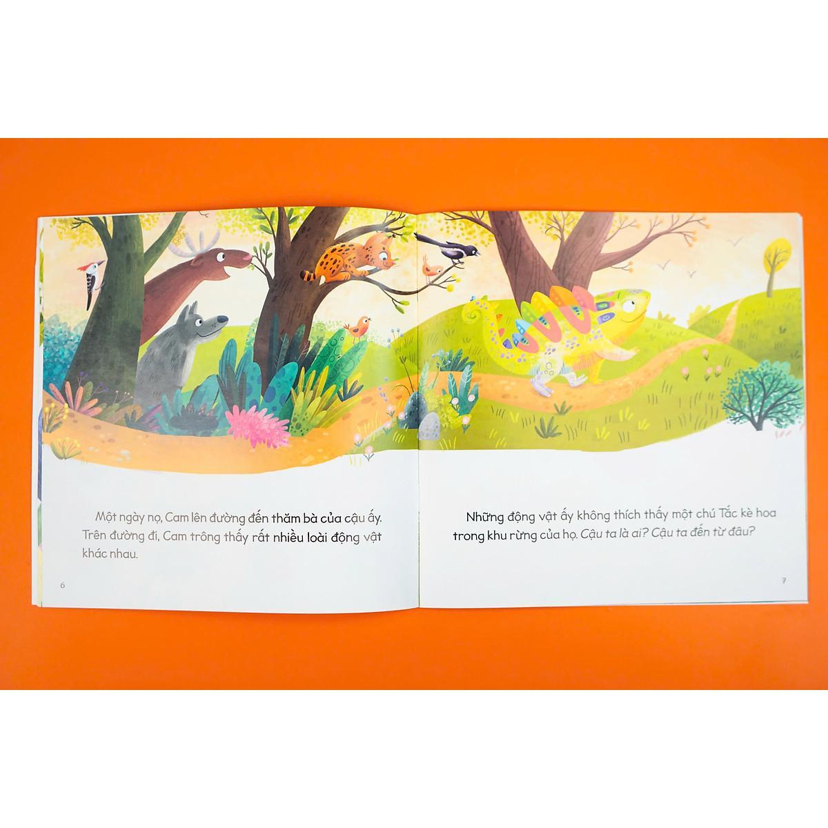 Cuốn sách cuối cùng kể về Cam, một chú tắc kè hoa luôn muốn tìm ai đó giống hệt mình để kết bạn nhưng không thể. Câu chuyện được xây dựng xoay quanh những cảm xúc quen thuộc như vui, buồn, sợ hãi, tức giận và hạnh phúc. Mỗi cảm xúc đều gắn với một màu sắc cầu vồng, giúp trẻ hình dung và nhận biết cảm xúc một cách trực quan. Cuốn sách là lời nhắc nhở rằng cảm xúc của mỗi người là duy nhất và đặc biệt, từ đó khuyến khích trẻ tự tin thể hiện bản thân.