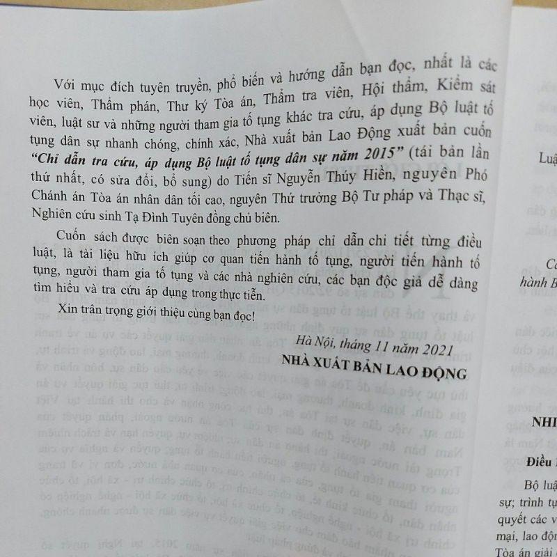 Chỉ dẫn tra cứu, áp dụng Bộ luật tố tụng dân sự năm 2015 Tác giả: TS. Nguyễn Thuý Hiền (Phó Chánh án Toà án nhân dân tối cao, nguyên Thứ trưởng Bộ Tư Pháp