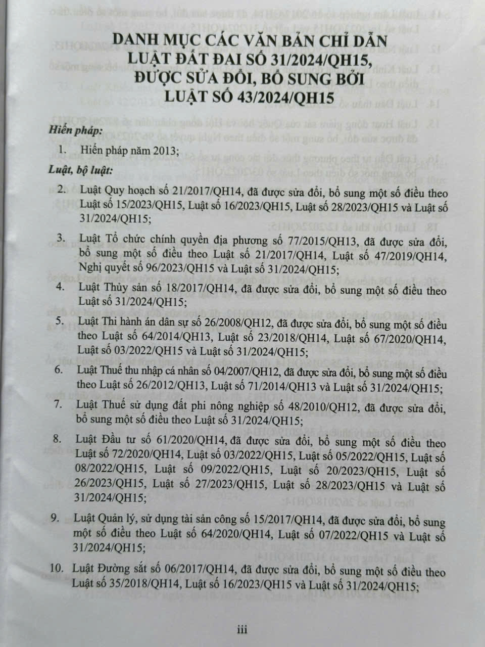 Luật Đất đai số 31/2024/QH15 được Quốc hội nước Cộng hòa xã hội chủ nghĩa Việt Nam khóa XV, kỳ họp bất thường lần thứ năm thông qua ngày 18 tháng 01 năm 2024,