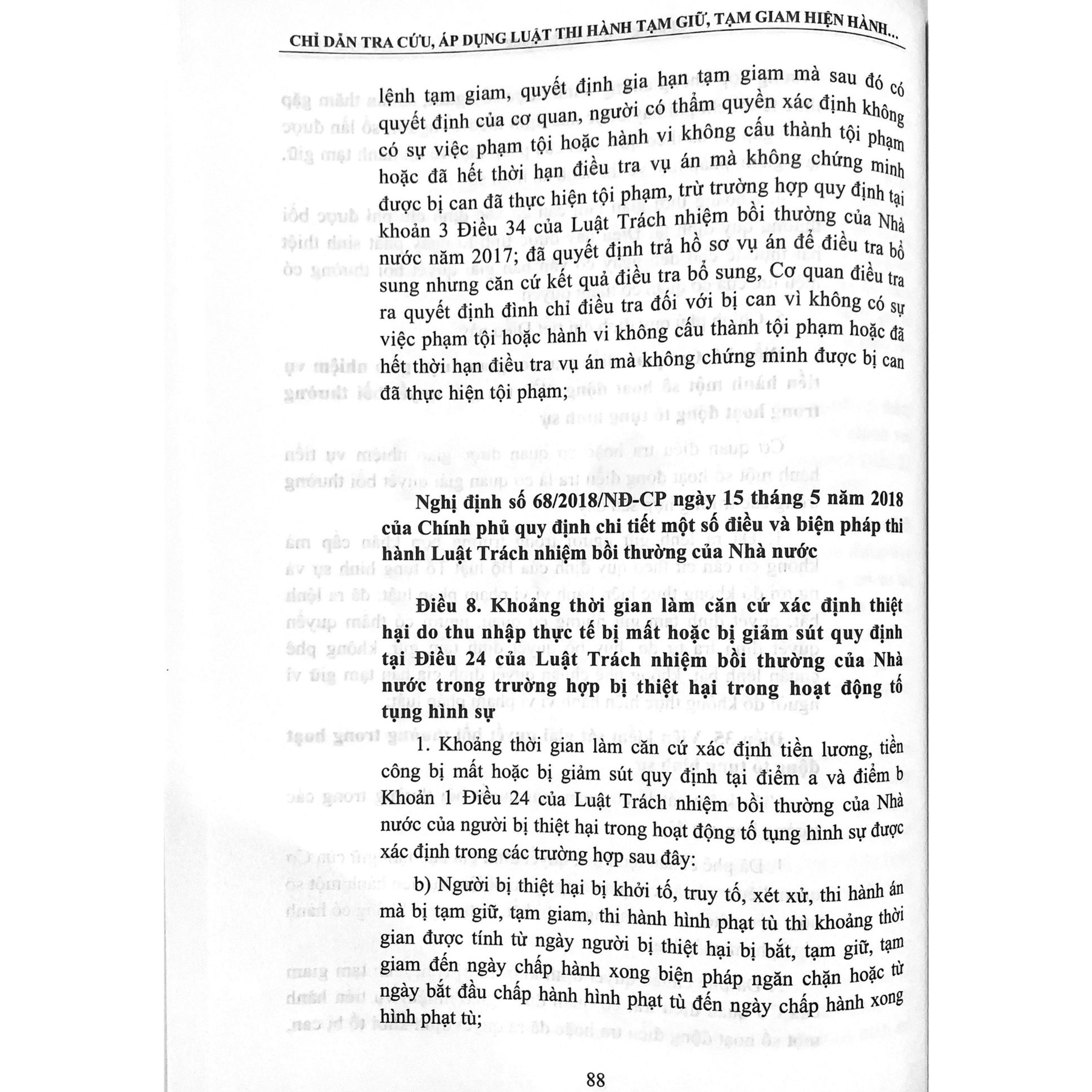 Để góp phần hiện thực hóa Hiến pháp năm 2013, Nhóm tác giả đã biên soạn cuốn "Chỉ dẫn tra cứu, áp dụng luật thi hành tạm giữ, tạm giam hiện hành góp phần thực thiện nguyên tắc hiến định "công nhận, tôn trọng, bảo vệ và bảo đảm quyền con người" ".Cuốn sách tập hợp đầy đủ văn bản pháp luật đang có hiệu lực về tạm giữ, tạm giam theo thủ tục tổ tụng hình sự với các nhóm nội dung liên quan đến từng chương, mục, điều, khoản, điểm của Luật Thi hành tạm giữ, tạm giam hiện hành. Vì vậy, cuốn sách vừa có ý nghĩa lý luận, ý nghĩa lịch sử, vừa có ý nghĩa thực tiễn sâu sắc và bố ích.