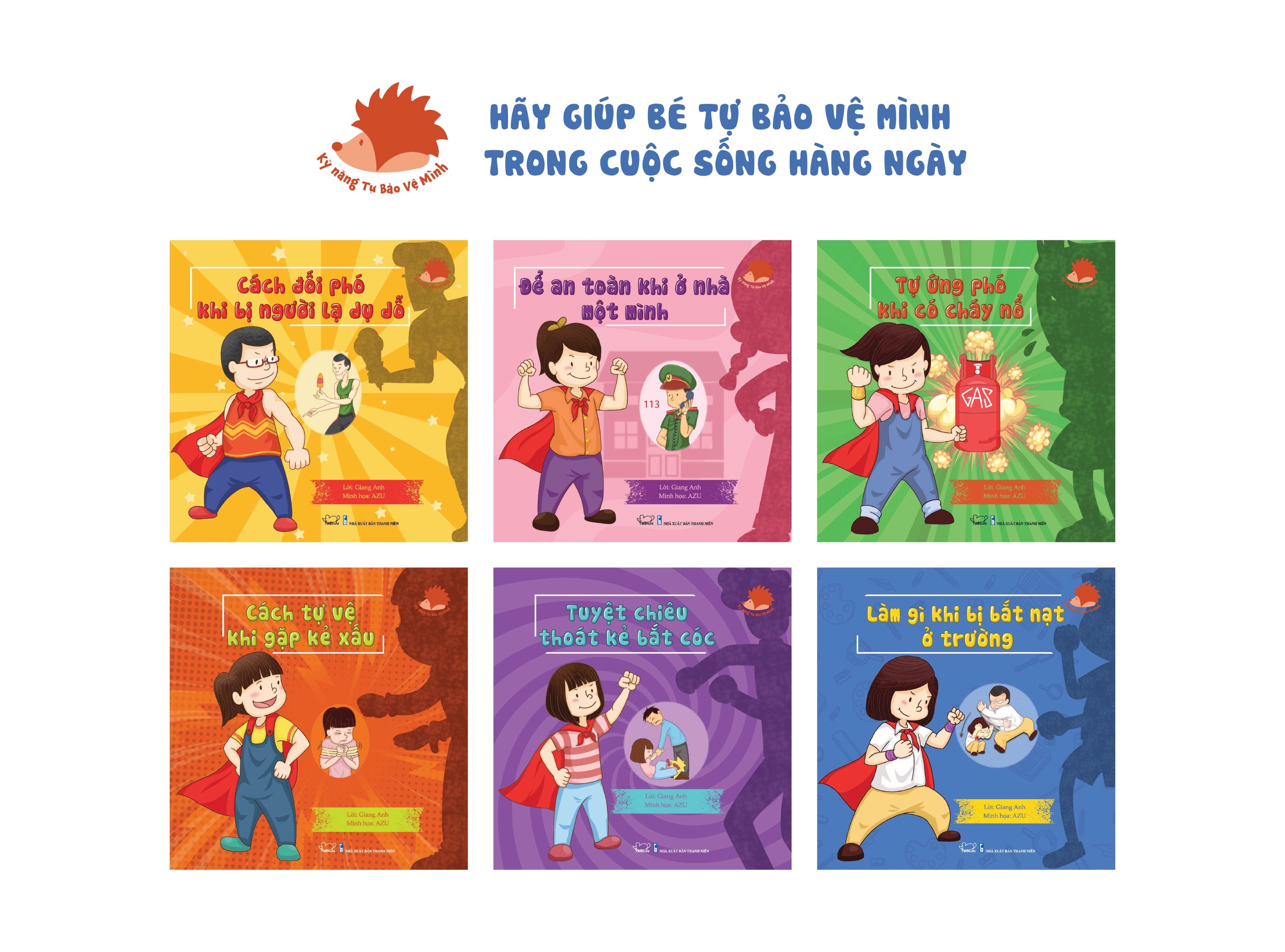 Bộ sách "Kỹ Năng Tự Bảo Vệ Mình" bao gồm 6 chủ đề, được thiết kế để trang bị cho trẻ em những kỹ năng cần thiết nhằm tự bảo vệ bản thân trong thế giới bên ngoài.