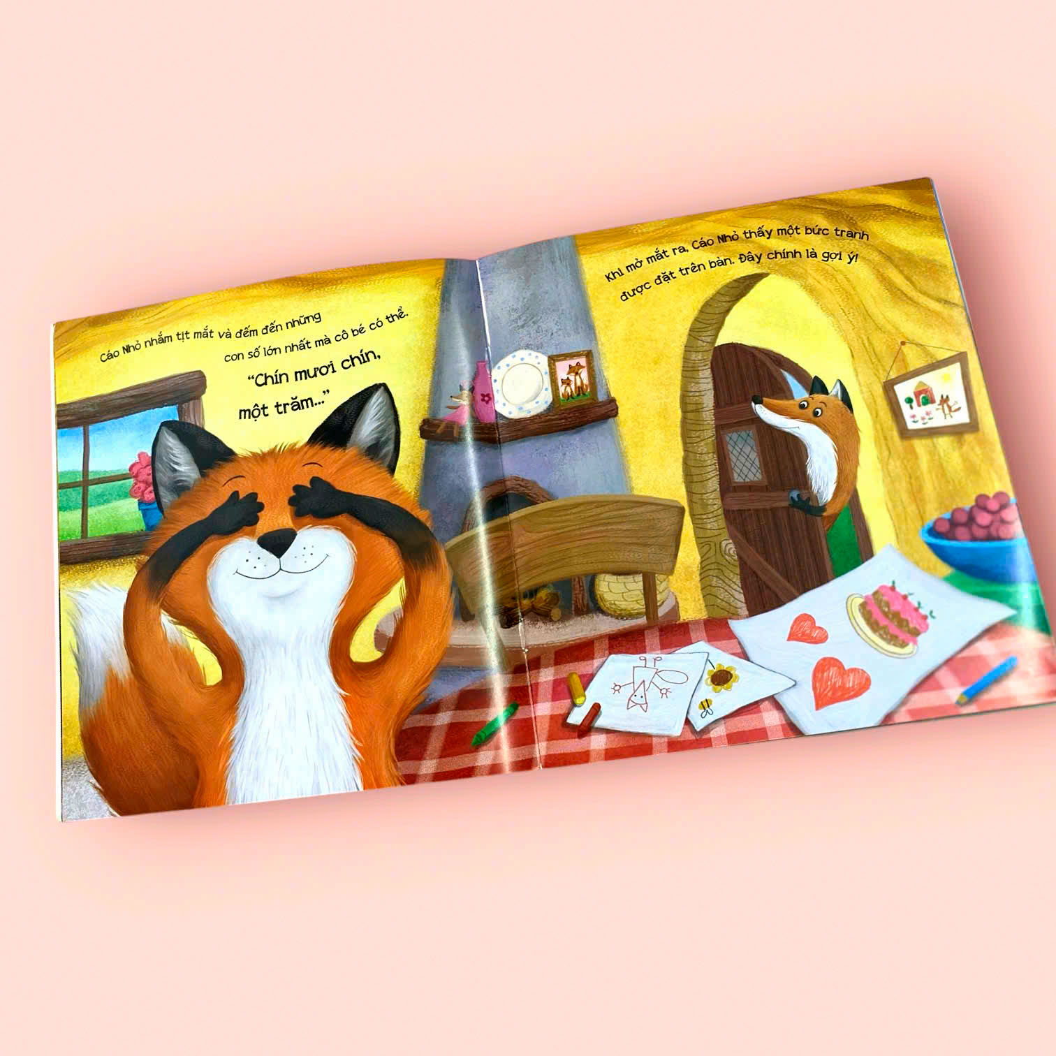 Một ngày, Cáo Bố nghĩ ra một trò chơi mới đầy sáng tạo: “Bố sẽ trốn, con sẽ tìm bố nhé, Cáo Nhỏ! Bố để lại một manh mối… hãy tìm bố ở nơi mà bố yêu thích nhất!”. Cáo Nhỏ nhắm mắt và bắt đầu đếm. Khi mở mắt, cô bé thấy một bức tranh xinh đẹp trên bàn - manh mối đầu tiên!