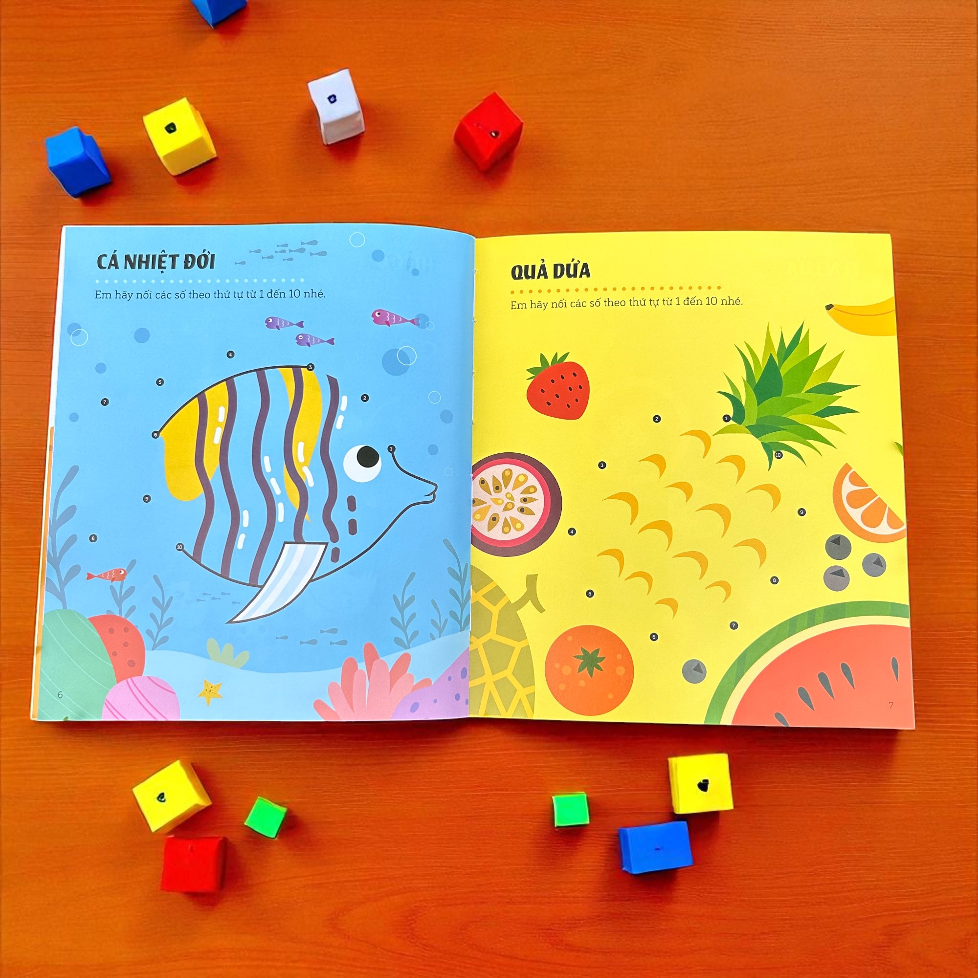Cuốn sách được chia thành nhiều thử thách tăng dần từ đơn giản đến nâng cao: Nối số từ 1–10: Phù hợp cho các bé mới làm quen với con số, giúp nhận biết trình tự và rèn kỹ năng cầm bút, quan sát; Nối số từ 1–20, 1–30: Tăng mức độ tập trung, luyện trí nhớ, khả năng đếm và nhận diện số; Nối số từ 1–50 và lên tới 100: Với các hình ảnh phức tạp hơn như khủng long, tàu thủy, ông già Noel, khu vui chơi, căn nhà kẹo ngọt, rạp xiếc… giúp trẻ tập trung cao độ trong thời gian dài, luyện kiên trì và sự hoàn thiện.
