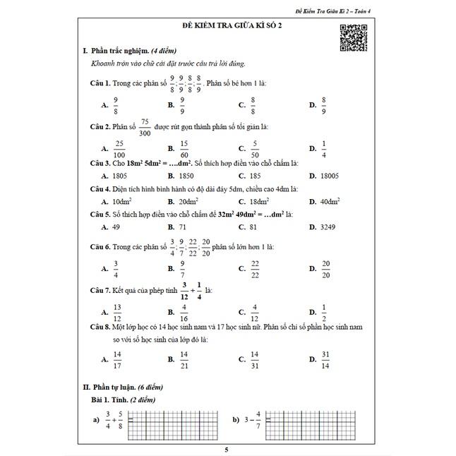 Đề kiểm tra học kỳ 2 môn toán lớp 4 năm 2020, Đề tham khảo số 2