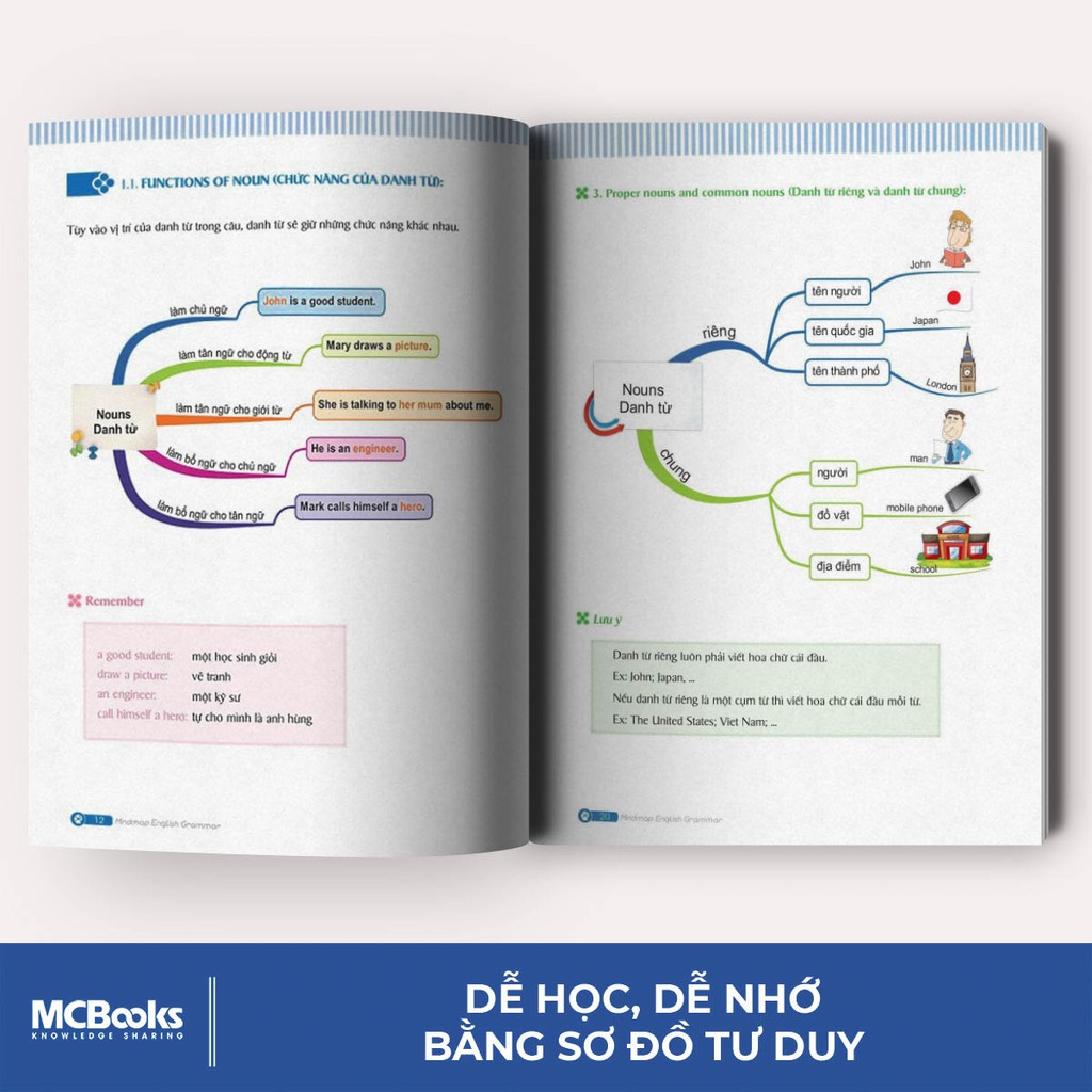 "Combo Mindmap English Grammar và Mindmap English Vocabulary" là combo tổng hợp những cấu trúc ngữ pháp căn bản nhất cùng từ vựng thông dụng được trình bày theo dạng sơ đồ tư duy sinh