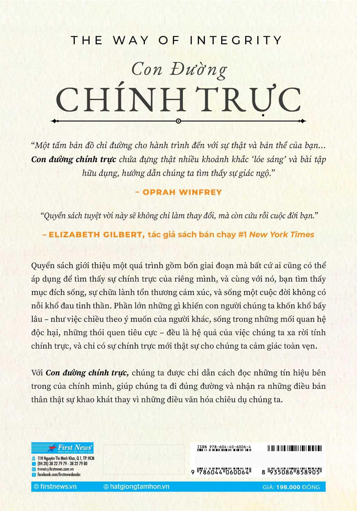 Với những chia sẻ sâu sắc, “Con đường chính trực” không chỉ là cuốn sách dành cho những ai đang tìm kiếm sự bình an nội tại, mà còn cho tất cả những người muốn sống thật với chính m.ình và đạt đến một cuộc sống tự do trọn vẹn.