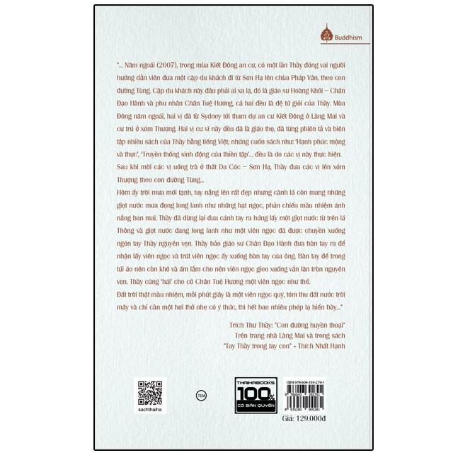 [ThaiHaBooks] “Con đường thiền tập cho người tại gia” được viết bởi vợ chồng giáo sư Hoàng Khôi với pháp danh Chân Đạo Hành và Chân Tuệ Hương – 2 giáo thọ tại gia của Làng Mai. Cuốn sách tập hợp các phương pháp tu tập tại gia cho người theo pháp môn Làng Mai, bao gồm đầy đủ “dụng cụ” để người tu tập ở nhà vẫn có thể tu tập đều đặn và đạt thành quả như: thiền tập để nuôi dưỡng và trị liệu; tu tập để chuyển hóa tâm hành; tu tập để sống chung an lạc, gia đình ấm êm, hạnh phúc; hướng dẫn cách ăn ngon, ăn lành; hướng dẫn cách để ngủ ngon; hướng dẫn cách thể dục và vận động phù hợp…