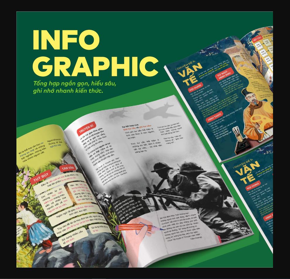 Toàn bộ lí thuyết trong sách được tổng hợp ngắn gọn lại bằng Infographic giúp bạn nâng cao cảm hứng học, dễ hiểu, kết nối kiến thức và ghi nhớ nhanh hơn.