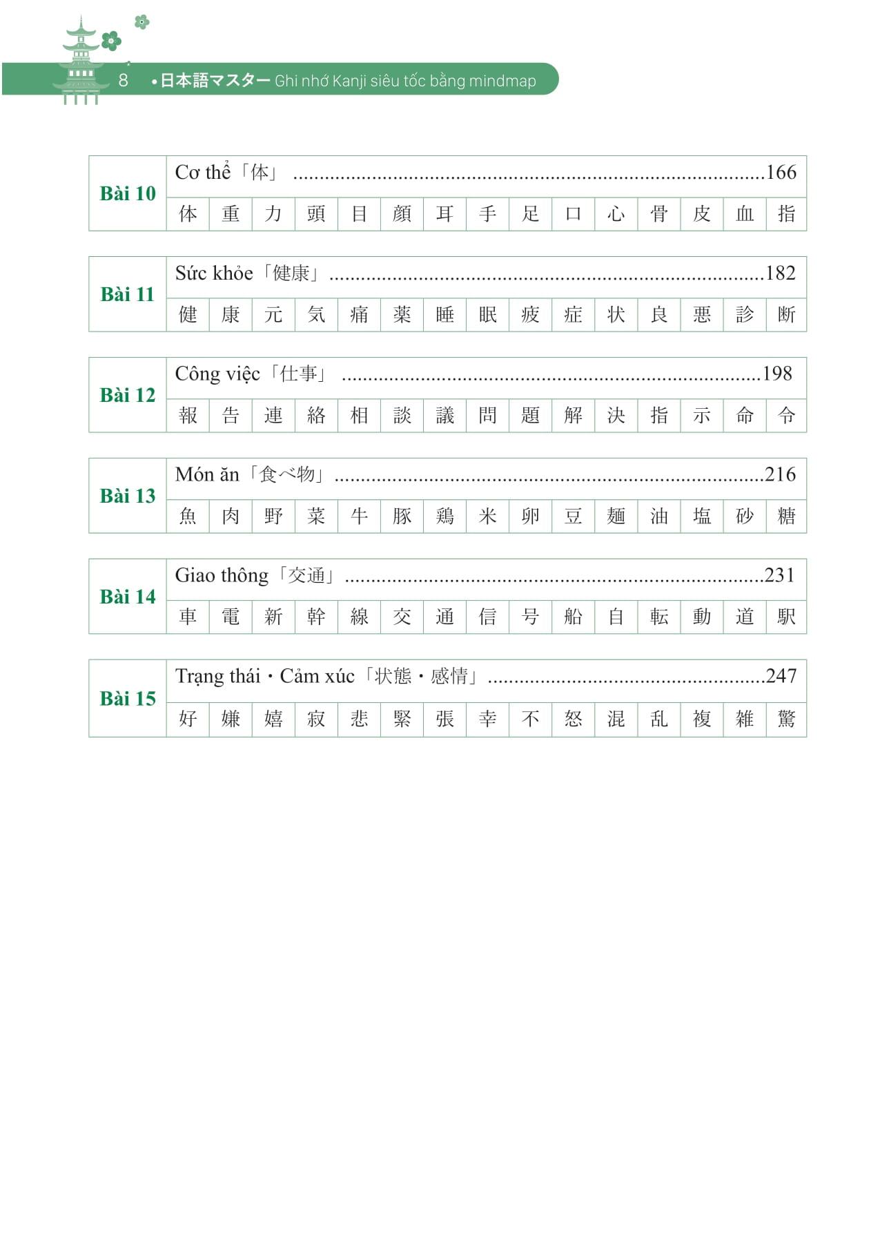 nội dung chính của cuốn sách ghi nhớ kanji siêu tốc bằng mindmap – trình độ sơ cấp
