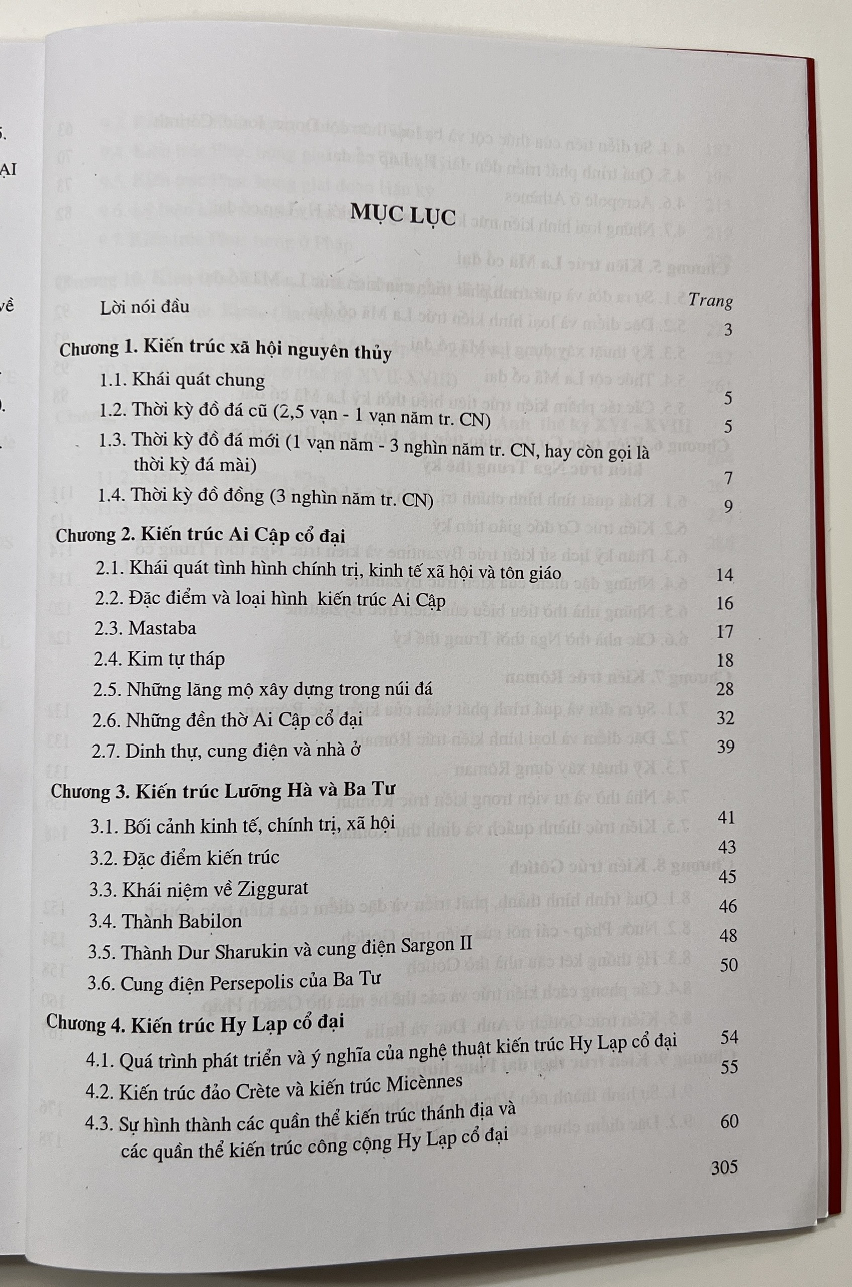 Đối với giáo trình Lịch sử kiến trúc thế giới, việc biên soạn sẽ được chia thành hai tập, trong đó Tập I, từ Xã hội nguyên thủy đến thế kỷ XVIII, ra mắt lần này bao gồm những nội dung sau đây:
