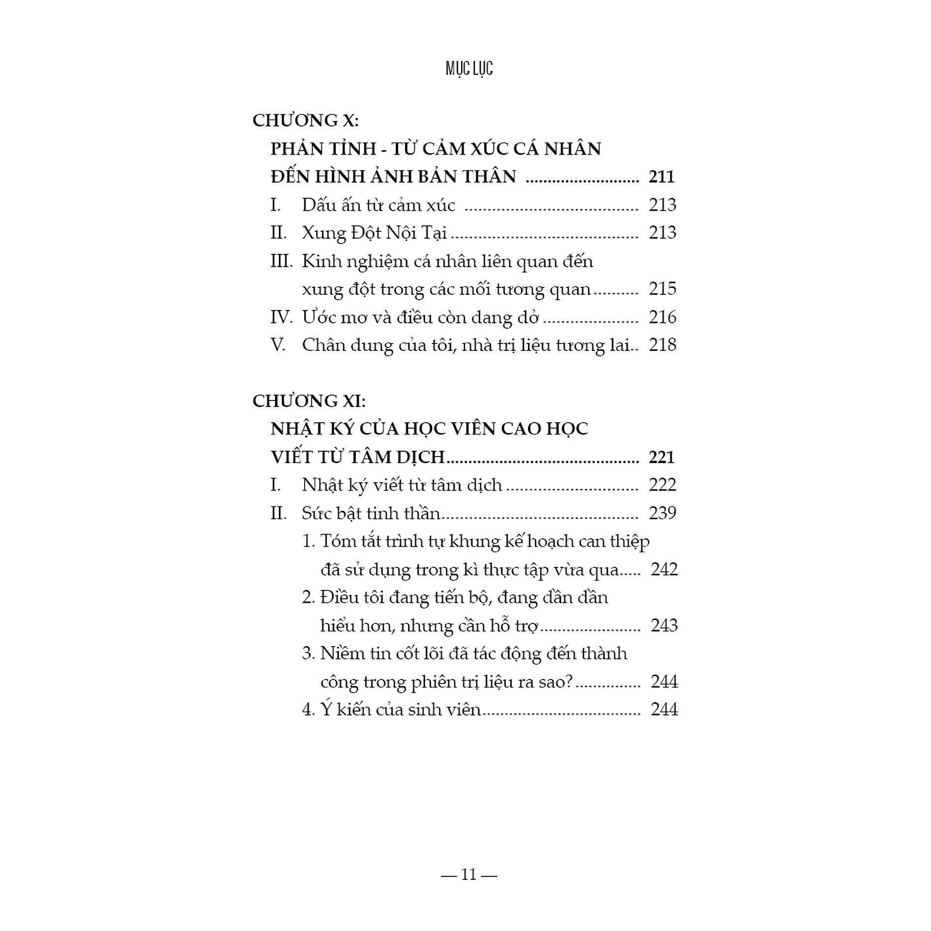 Ước mơ về nhà trị liệu tương lai: vừa chuyên nghiệp và có tấm lòng; vừa tận tâm và kiên nhẫn trong khi chữa lành thương tích của tha nhân; người vừa quyết đoán khi cắt bỏ thói quen không tốt, đồng thời có khả năng bao dung với khổ đau của con người; người dám nhìn thấy sự sống trong đống đổ nát của cuộc đời và kiên nhẫn bắt đầu lại. Trọng tâm của môn Practicum, thực hành trị liệu tâm lý lâm sàng, chúng tôi trước tiên chú trọng: 1) khám phá và chữa lành bản thân nhà trị liệu; 2) đào tạo nhà trị liệu tương lai trở thành người lắng nghe thấu cảm, biết nhạy bén để nhận thức được nhu cầu của bản thân và của người khác, hầu có thể xây dựng sự an toàn, tôn trọng, cẩn mật, kiên nhẫn…. Nhà trị liệu tương lai cần ý thức rõ không những điểm mạnh mà cả điểm yếu của bản thân, khả năng nhìn ra ánh sáng nơi tăm tối, đọc được những gì không được nói ra bằng lời của tha nhân, người vừa biết cởi mở để lắng nghe với sự hiện diện ấm áp, an toàn, đồng thời thể hiện được tính chuyên nghiệp, tính bảo mật, trong khi đó biết chia sẻ thông tin đúng lúc, biết ghi chú những dịch chuyển của thân chủ trong phiên trị liệu và biết lưu giữ hồ sơ lâm sàng, người lưu tâm đến vấn đề đạo đức, nhạy bén để trao quyền cho thân chủ, nhưng không tìm cách thoái thác trách nhiệm, người có khả năng biết tự chăm sóc và hài lòng với những gì mình đã làm tốt nhất. Đây là nỗ lực của học viên để chia sẻ với các lớp sau, những suy tư được kết nối giữa cơ sở lý thuyết tâm lý với kinh nghiệm sống rất cá nhân, những gập ghềnh và những thành tựu trên hành trình trở thành nhà trị liệu tương lai. Chúng tôi trân trọng gửi đến người đọc tập sách này, được chắt lọc từ suy tư của học viên cao học, liên quan đến môn thực hành tâm lý lâm sàng. Sách đã được người hướng dẫn phản hồi, góp ý, ghi nhận và hiệu đính. Vì mục tiêu của tập sách này là chia sẻ kinh nghiệm học thuật, dưới sự hướng dẫn của giám sát chuyên môn, nên chúng tôi biết ơn sự trân trọng của độc giả. TP, ngày /10/2022 Tiến sĩ Nguyễn Thị Thanh Tú, Fmm
