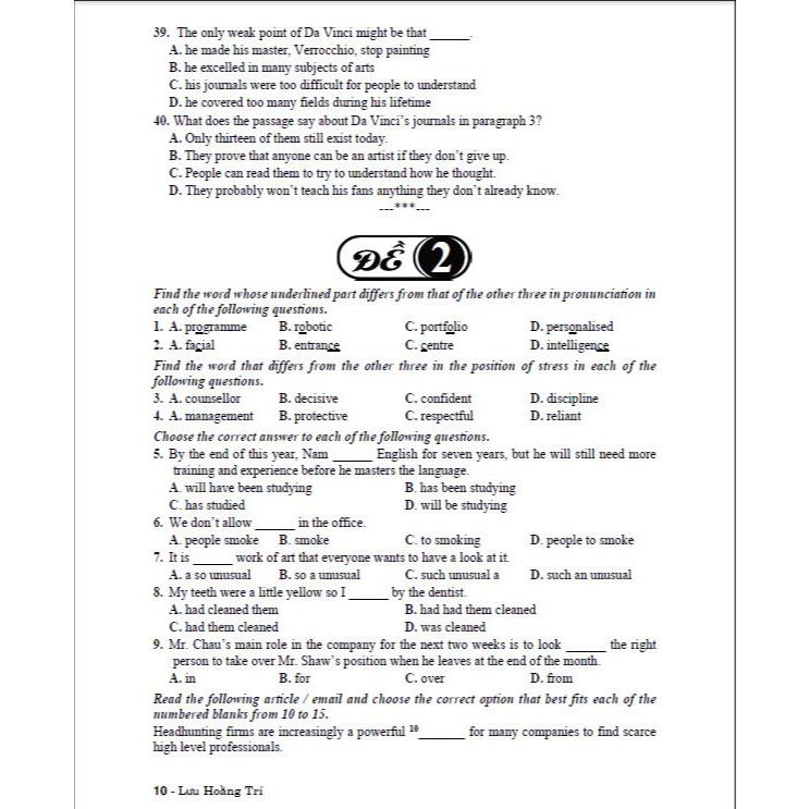 Các đề thi do chúng tôi biên soạn với mong muốn giúp các em học sinh có sự chuẩn bị tốt nhất cho kì thi sắp đến. Các câu hỏi được biên soạn dựa trên việc kiểm tra kiến thức cơ bản và nâng cao theo từng phần của cấu trúc đề thi.