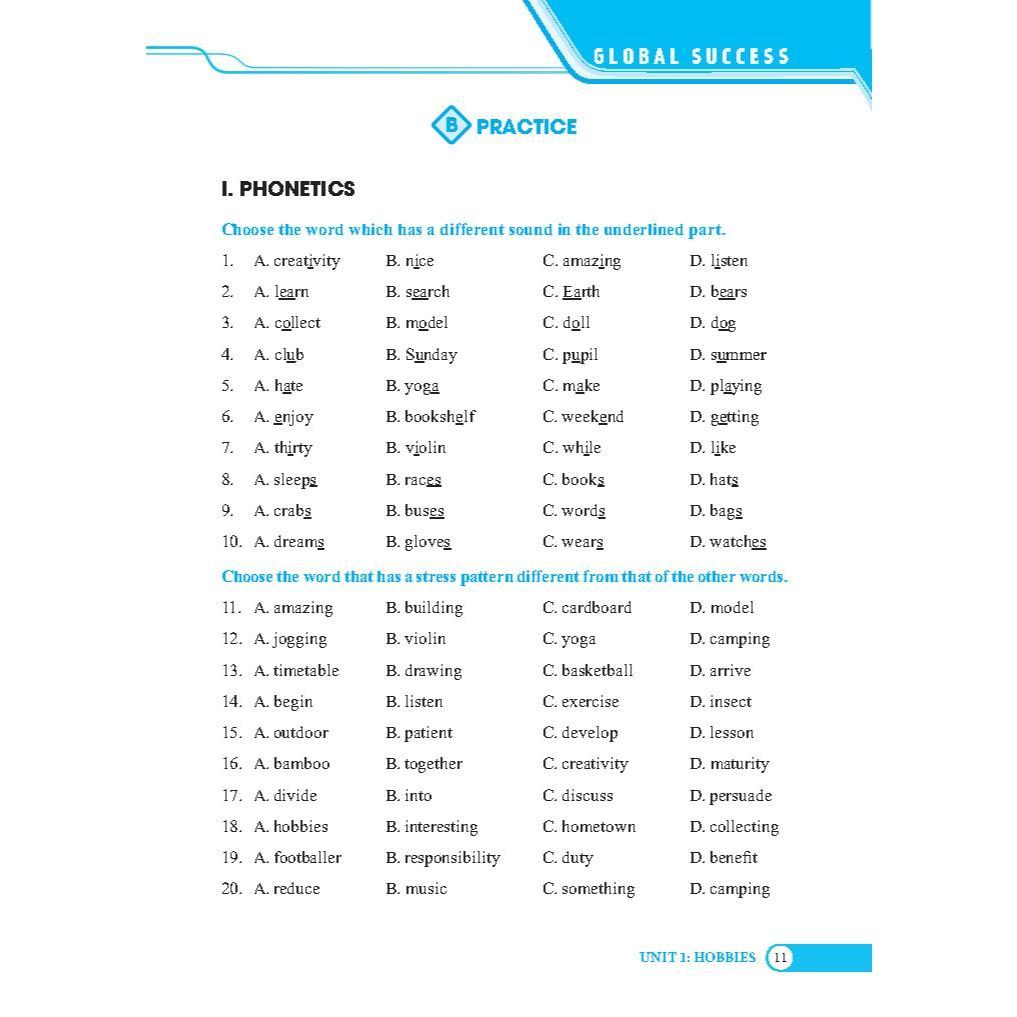 GLOBAL SUCCESS - Bài tập trắc nghiệm tiếng anh lớp 7 tập 1 (có đáp án)