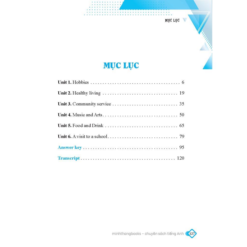 Phần Thực hành kỹ năng: Các bài tập được biên soạn theo từng bài học có nội dung tương ứng với bài học trong sách giáo khoa giúp các học sinh thực hành kỹ năng Nghe - Nói - Đọc - Viết. Kết hợp với nội dung trong sách là đĩa CD phát âm tiếng Anh chuẩn của người bản ngữ.