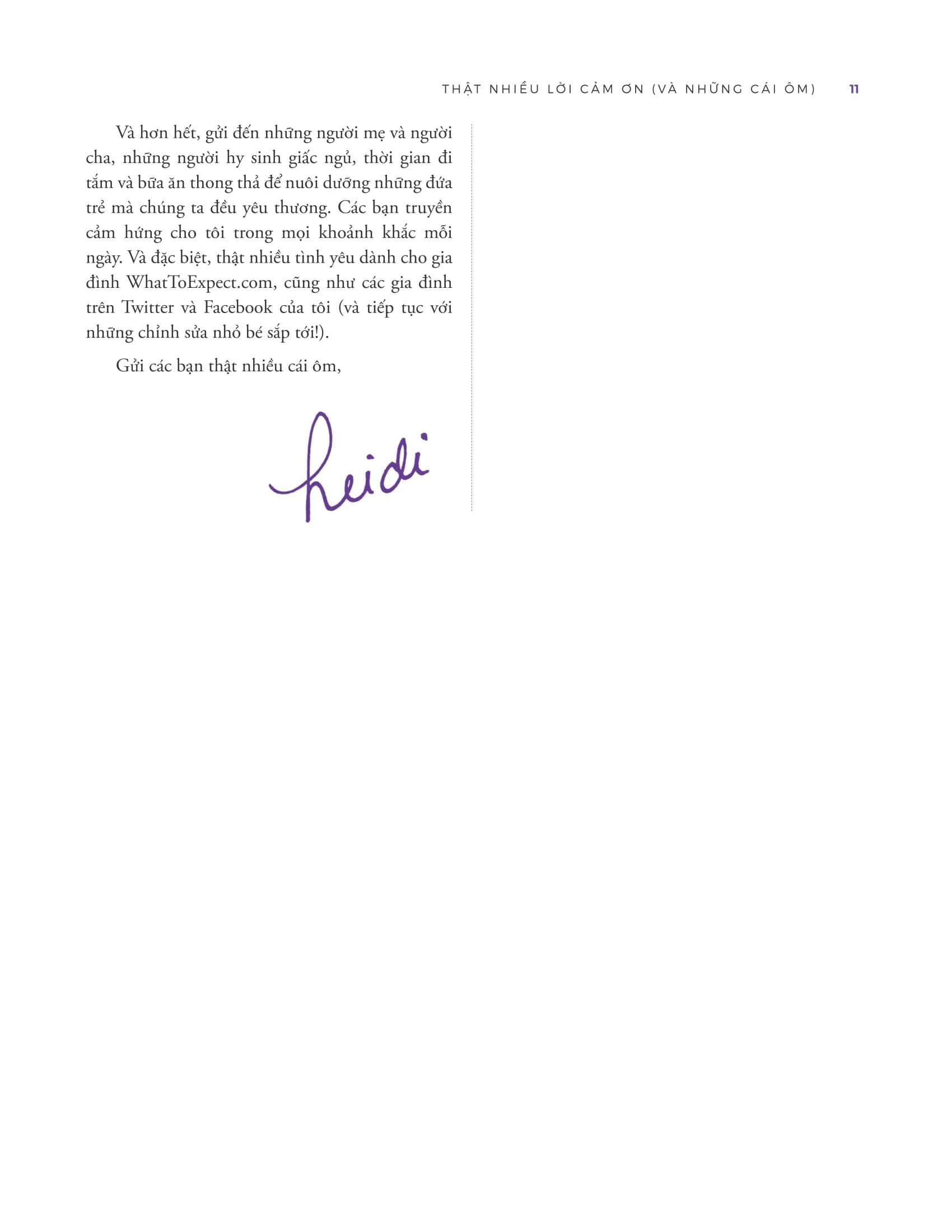 Heidi Murkoff là một tác giả nổi tiếng người Mỹ, được biết đến nhiều nhất với loạt sách "What to Expect," bắt đầu với "What to Expect When You're Expecting." Bà đã viết cuốn sách này khi mang thai đứa con đầu lòng vào năm 1984, nhằm cung cấp thông tin chi tiết và dễ hiểu cho các bà mẹ tương lai. Sách của bà đã trở thành một nguồn tài liệu quan trọng và được xem như “kinh thánh” của các bà mẹ mang thai.
