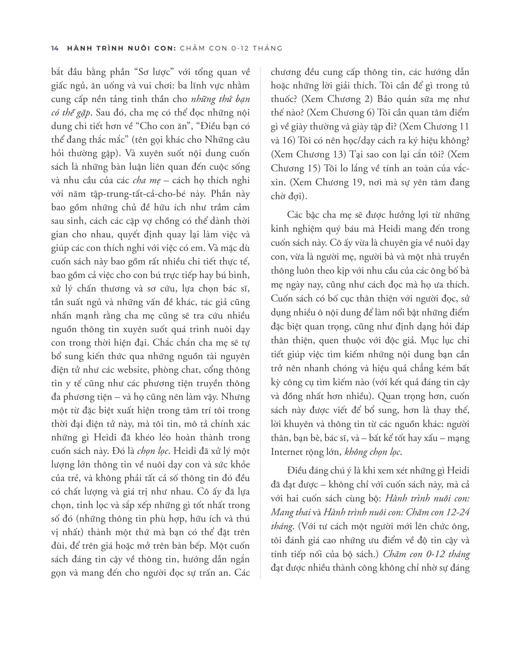 Với cách tiếp cận toàn diện và chi tiết, "Hành Trình Nuôi Con: Chăm Con 0-12 Tháng" không chỉ là một cuốn sách hướng dẫn mà còn là người bạn đồng hành đáng tin cậy, giúp cha mẹ tự tin hơn trong việc nuôi dạy con cái trong những năm tháng đầu đời đầy thử thách nhưng cũng đầy hạnh phúc này.