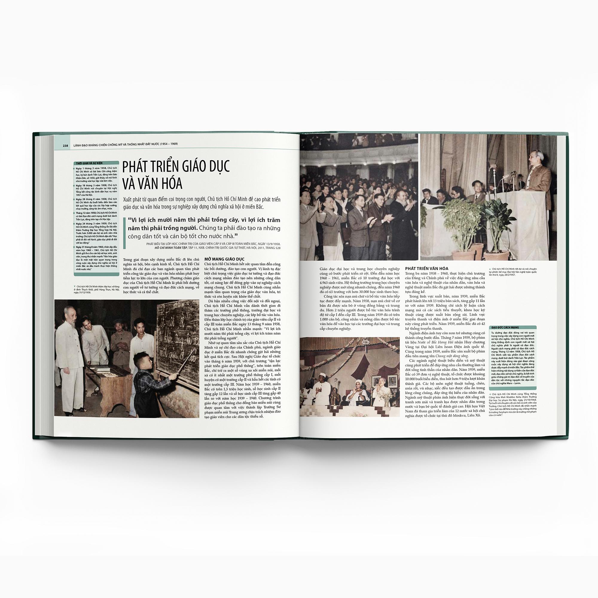 lần giở qua từng trang sách, bạn đọc có thể hình dung toàn bộ cuộc đời hoạt động cách mạng sôi nổi và phong phú của chủ tịch hồ chí minh: ra đi tìm đường cứu nước từ bến cảng nhà rồng; đi đến nhiều quốc gia và châu lục để mở rộng tầm nhìn về thế giới; trở thành người cộng sản việt nam đầu tiên và hoạt động tích cực phát triển phong trào cộng sản quốc tế; tổ chức hội nghị thành lập đảng cộng sản việt nam năm 1930; trải qua những năm tháng tù đày lao khổ vì lòng yêu nước; trở về tổ quốc lãnh đạo cách mạng việt nam và phát động cuộc tổng khởi nghĩa tháng tám năm 1945, thành lập nhà nước việt nam dân chủ cộng hòa; lãnh đạo chính quyền cách mạng non trẻ bước vào cuộc kháng chiến chống pháp trường kỳ và giành chiến thắng lịch sử điện biên phủ năm 1954; tiếp tục lãnh đạo toàn quân và toàn dân bước vào cuộc kháng chiến chống mỹ, hướng tới mục tiêu thống nhất đất nước. mỗi trang sách sẽ mang đến một câu chuyện nhỏ về một mảnh ghép trong cuộc đời chủ tịch hồ chí minh, từ đó tổng hợp thành một bức chân dung tương đối hoàn chỉnh về vị lãnh tụ thời hiện đại của dân tộc việt nam.