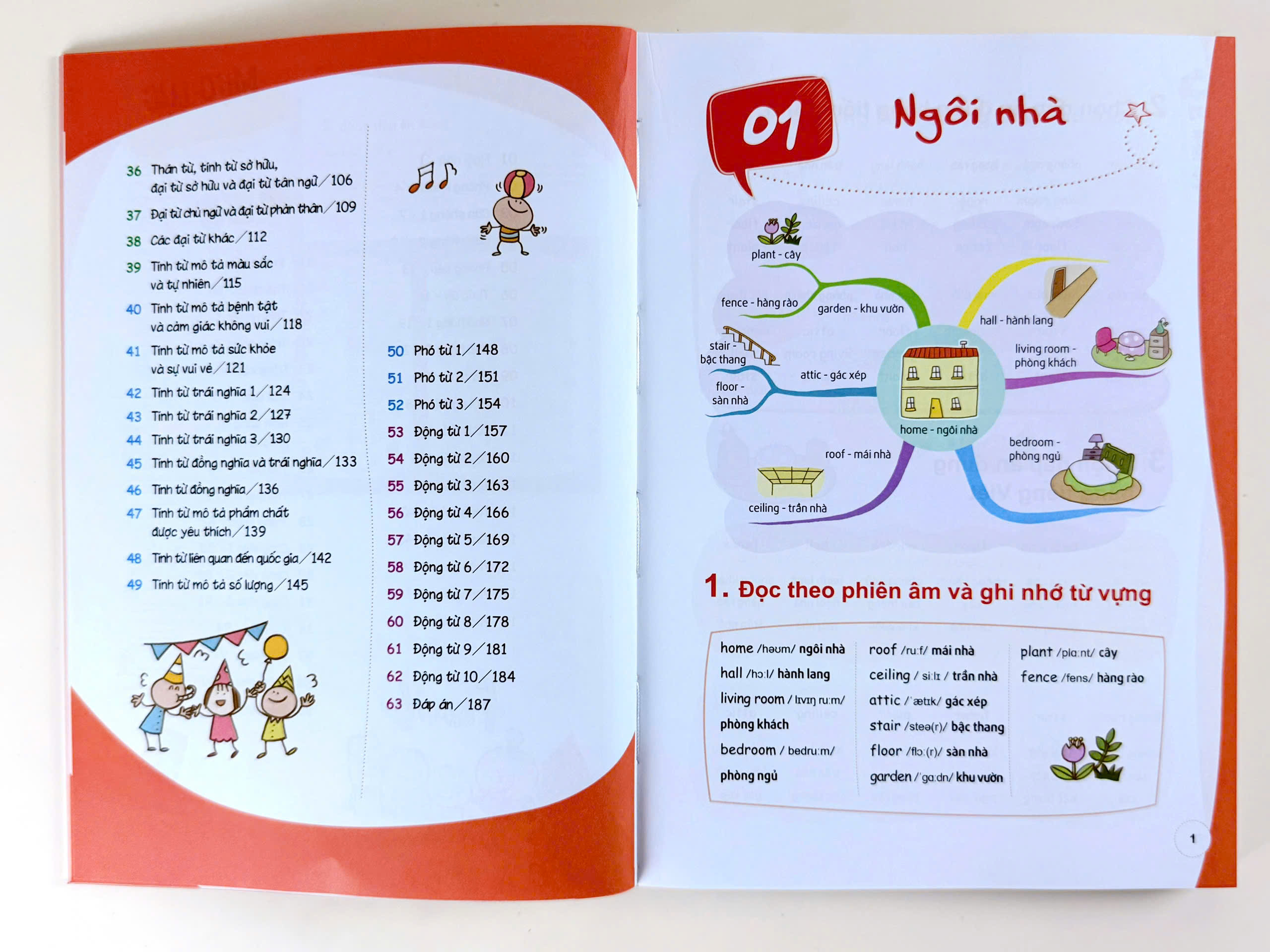 - Hình thức: Bìa mềm Bao gồm 62 chủ đề đa dạng, từ vựng phong phú Phân chia từ vựng theo 62 chủ đề phổ biến trong cuộc sống và giao tiếp hằng ngày như: Home (Ngôi nhà), School (Trường học), Travel (Du lịch), Health (Sức khỏe), Shopping (Mua sắm)… Giúp học nhanh hơn, nhớ lâu hơn nhờ cách trình bày khoa học theo sơ đồ tư duy. Phát âm chuẩn ngay từ đầu với phần phiên âm rõ ràng. Nâng cao khả năng phản xạ từ vựng thông qua hệ thống bài tập thực hành đa dạng.