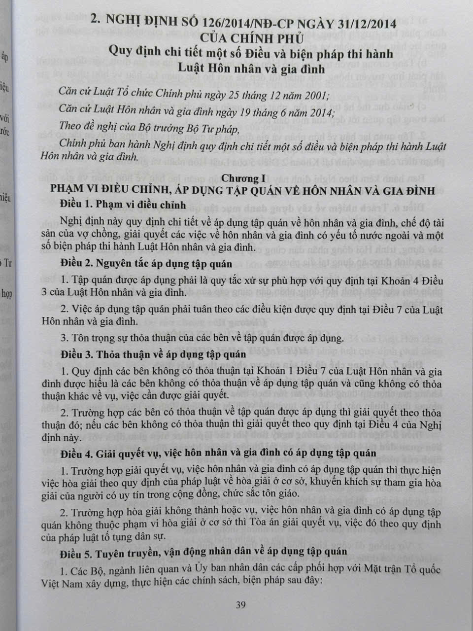Mục lục: Chương 1: Những quy định chung Chương 2: Kết hôn Chương 3: Quan hệ giữa và chồng Chương 7: Cấp dưỡng Chương 8: Quan hệ hôn nhân và gia đinh có yếu tố