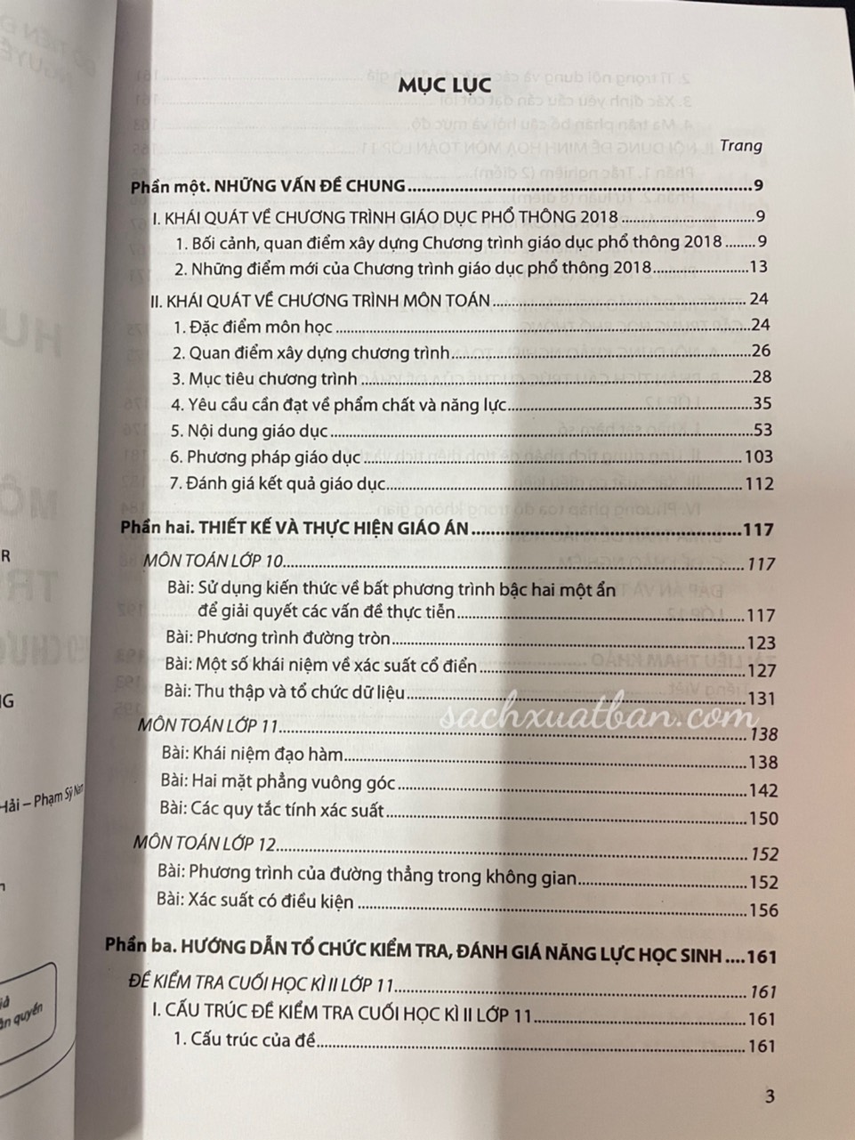 - Đánh giá kết quả giáo dục Phần hai. Thiết kế và thực hiện dạo án Môn Toán lớp 10 Môn Toán lớp 11 Môn Toán lớp 12 Phần ba. Hướng dẫn tổ chức kiểm tra, đánh giá năng lực học sinh Đề kiểm tra cuối học kỳ hai lớp 11 Thiết kế đề khảo nghiệm môn toán lớp 12 cấp Trung học phổ thông NTBOOKS CAM KẾT: