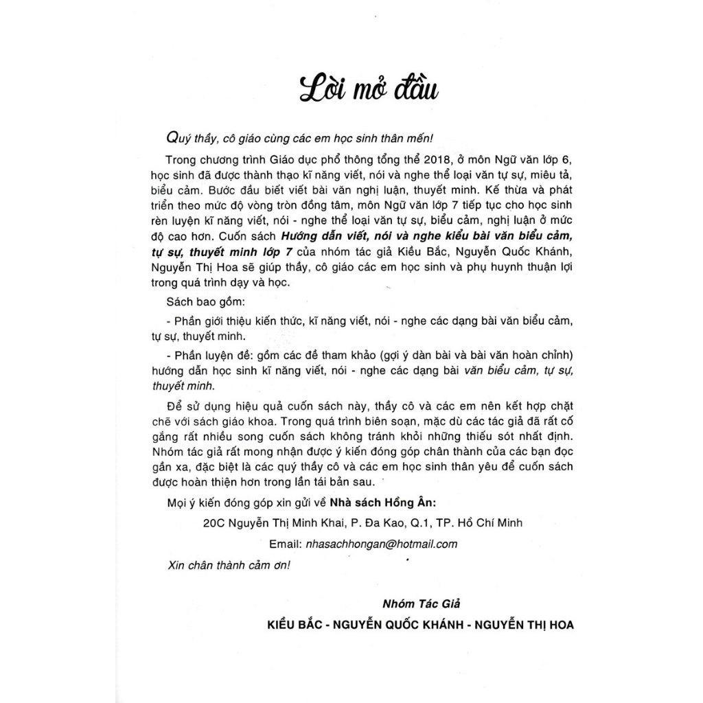 Hướng Dẫn Nói Và Viết Văn Biểu Cảm - Tự Sự - Thuyết Minh Lớp 7 (Biên Soạn Theo Chương Trình GDPT Mới)